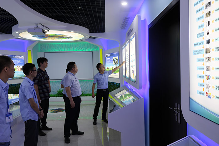 9月22日,晏局長蒞臨我司參觀調研,彭會剛總經理對晏局長的到來表示熱烈的歡迎,并陪同晏局長先后參觀了環保教育展廳、生產車間。