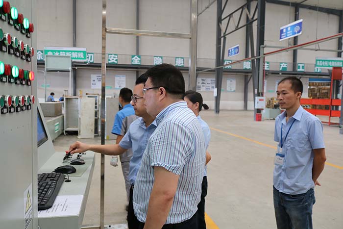 參觀期間,彭會剛總經理向晏局長詳細介紹了廢棄電器電子產品的拆解工藝流程及產物帶來的環境資源效益。在生產處理現場,彭會剛總經理親自為晏局長示范冰箱拆解線破碎系統的運行操作。現代化的拆解工藝得到了晏局長的高度肯定,同時希望我司能夠增強核心技術突破能力,為廢棄電器電子產品拆解行業的現代化發展不斷帶來正能量。