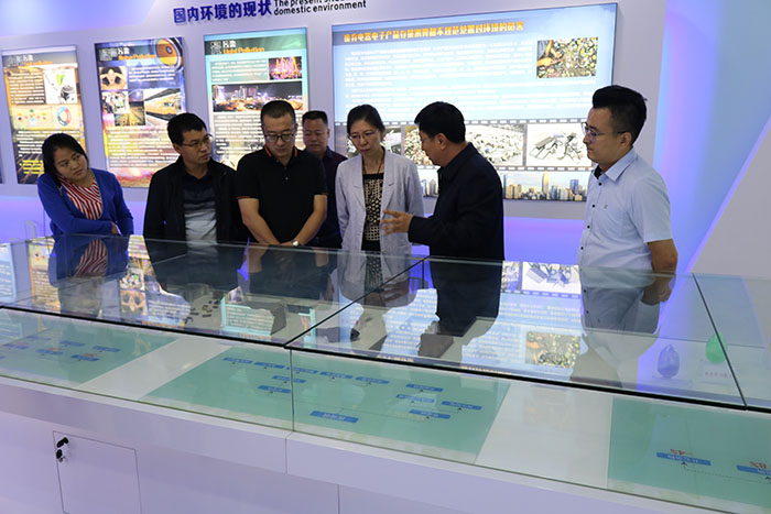調研期間,李主任先后參觀了環保教育展廳、視頻監控中心,并進入生產現場深入了解我司從廢棄電器電子產品入庫、拆解到拆解產物包裝、存儲的全過程。