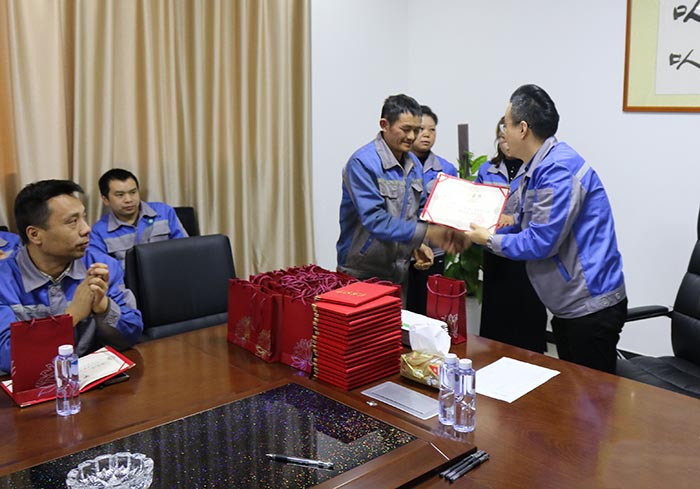 會議首先對2018年度優秀員工進行了現場表彰,公司的成就離不開員工的默默堅守和辛勤付出,總經理彭會剛分別向優秀員工李強、閆根中、譚富強、彭開洋、唐康學等20人及體系編寫小組成員16人頒發了榮譽證書和獎金,以此表揚先進、樹立榜樣,進一步激勵全體員工工作再上新臺階。