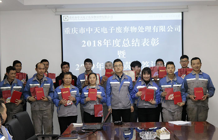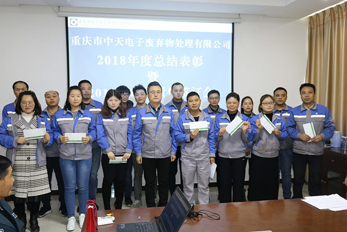 律回春暉漸,萬象始更新。轉眼間忙碌的2018年已經過去,充滿希望的2019年向我們走來。重慶市中天電子廢棄物處理有限公司2018年度總結表彰暨2019年迎新年會于2019年1月28日在公司舉行,副總經理易建軍主持了此次會議。