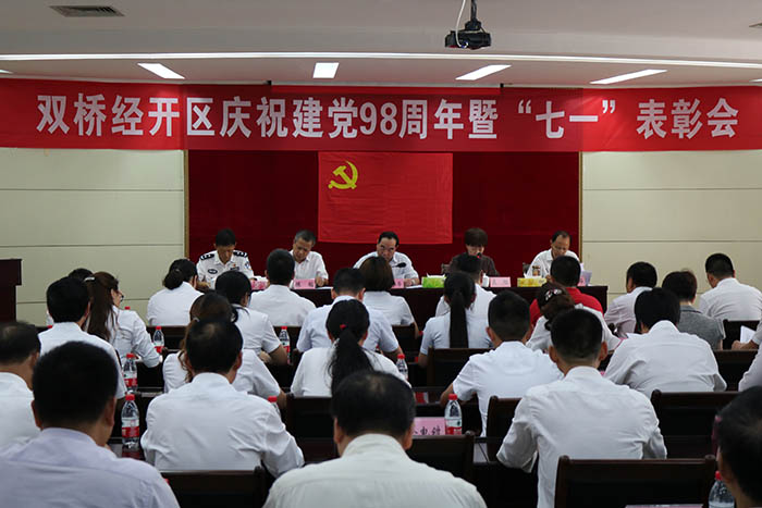 2019年7月2日,雙橋經開區召開慶祝建黨98周年暨“七一”表彰大會,經開區各機關黨支部黨員和受表彰的先進集體及個人共100余人參加會議,雙橋經開區領導王守華、吳勵、陳韜、陳建華、宋志軍出席會議。