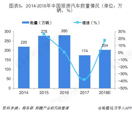 數(shù)據(jù)顯示,2017年我國(guó)汽車報(bào)廢數(shù)量?jī)H為174萬(wàn)輛。我國(guó)整體汽車報(bào)廢率較低,明顯低于發(fā)達(dá)國(guó)家6%-8%的水平。