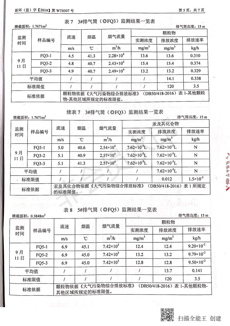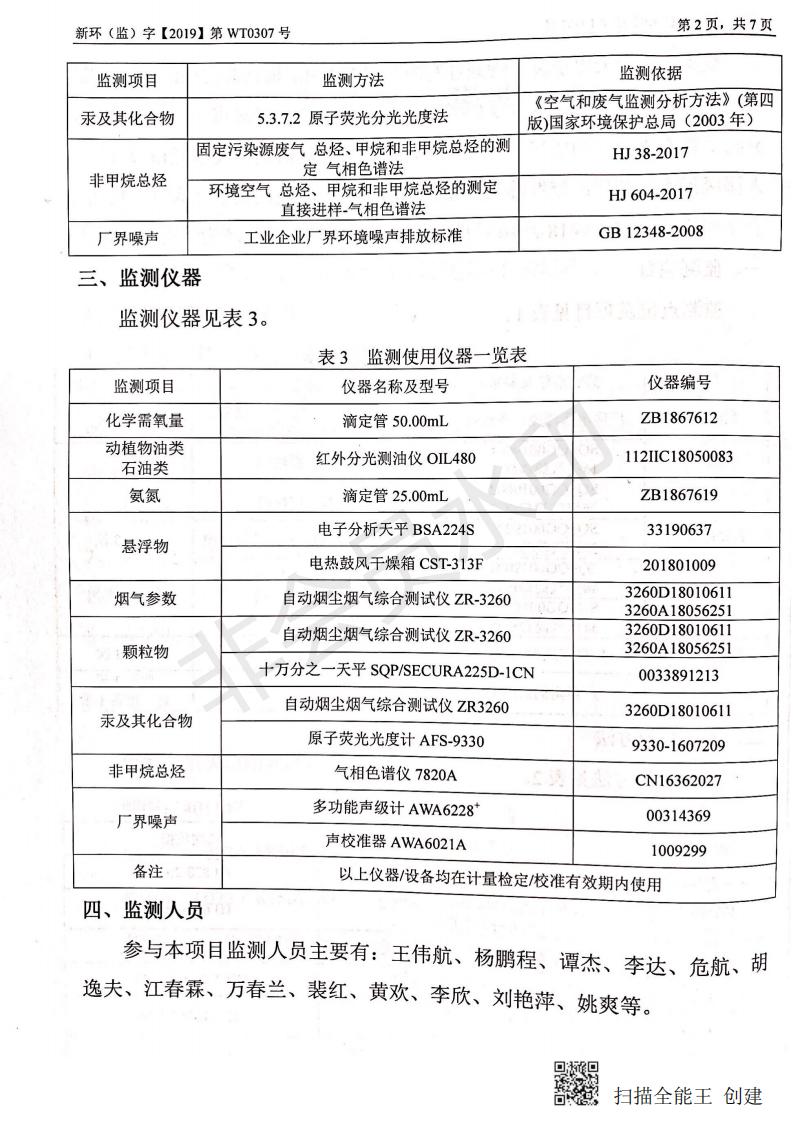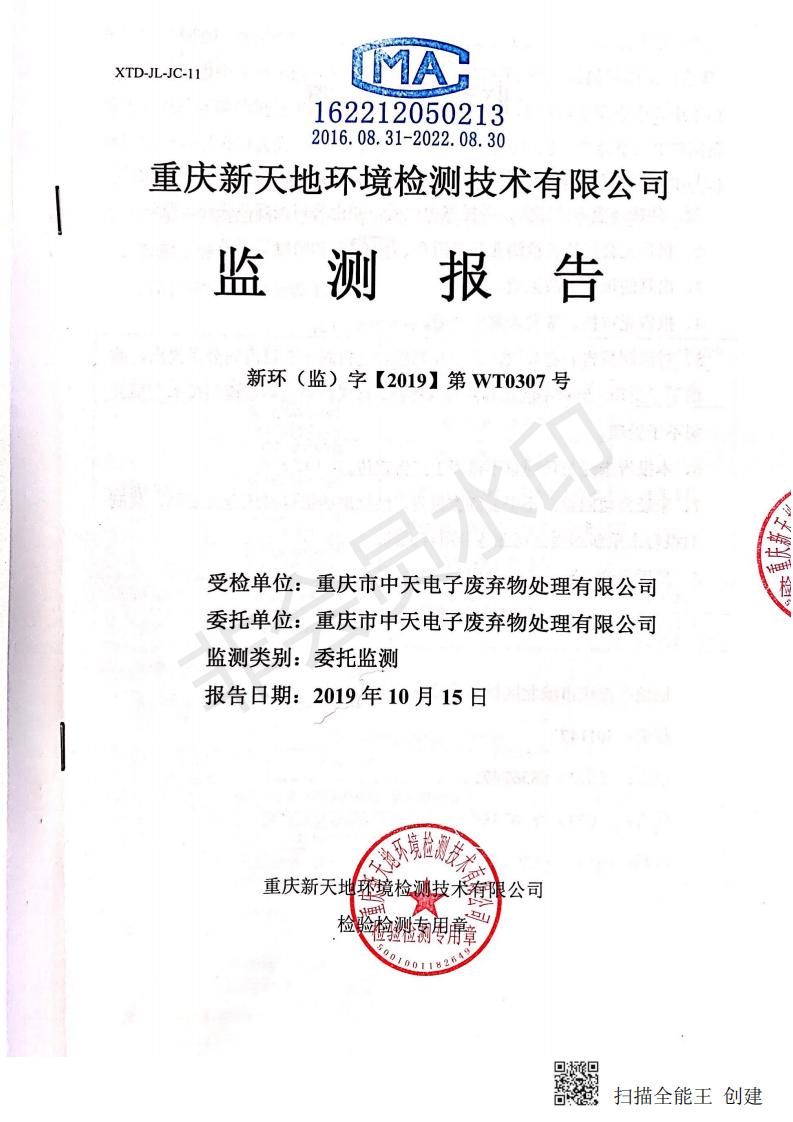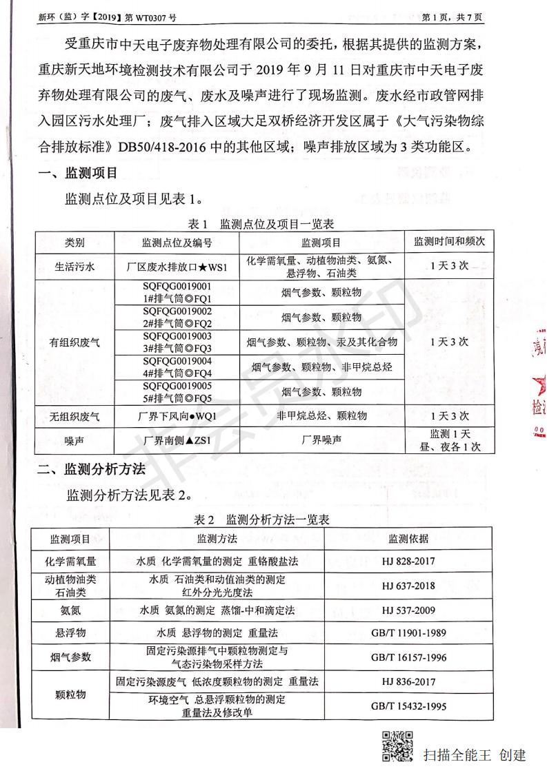 2019年10月15日,我司委托第三方機構進行了2019年度第三季度監測,監測項目為水氣聲,各項數據達標,現將監測報告公示如下: