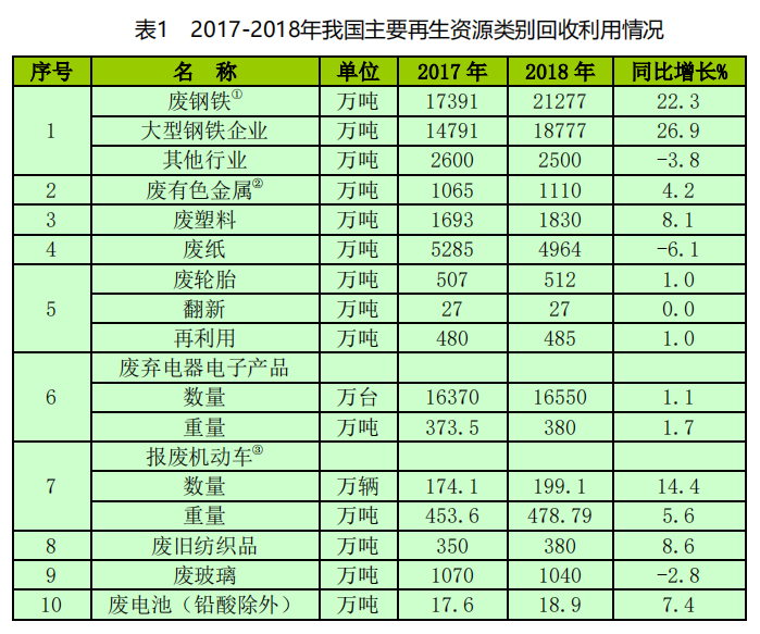 2019中國再生資源回收行業(yè)發(fā)展報告(部分內(nèi)容)