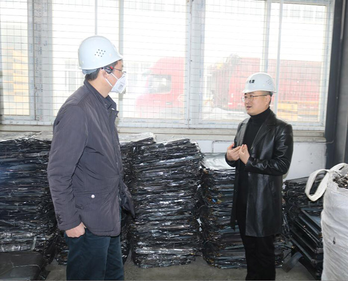 在參觀生產車間期間,彭會剛總經理向劉主任一行介紹了公司的工藝流程及技術手段、產物的分類標準及儲存方式、危廢的管理模式及處置方案。劉主任對中天電廢積極延伸產業鏈、實現產業模式優化升級,不斷推進資源節約型、環境友好型項目建設表示支持,并且希望中天電廢能夠利用好國家及地方出臺的各種環保政策,促進產業結構多元化發展。