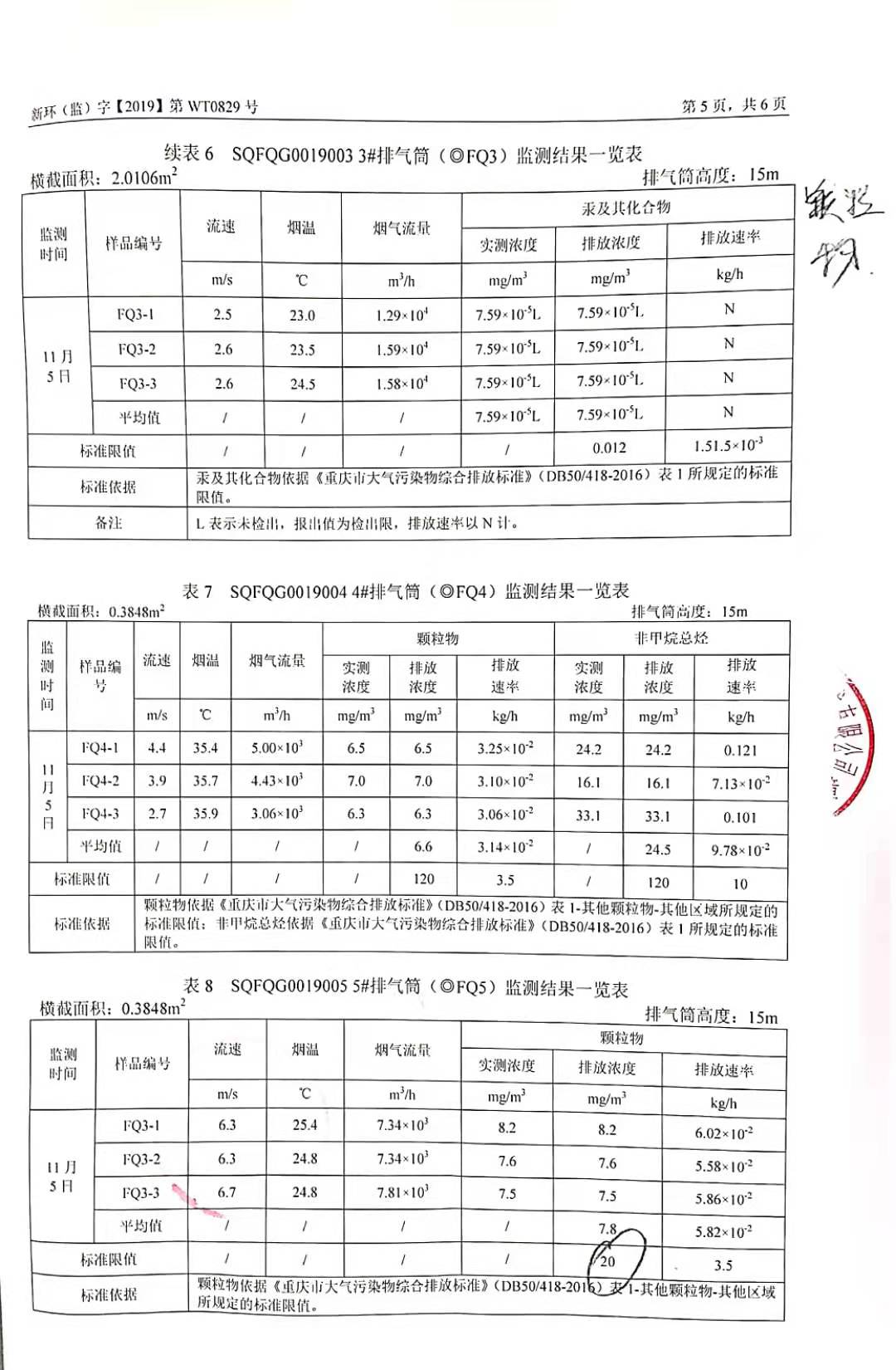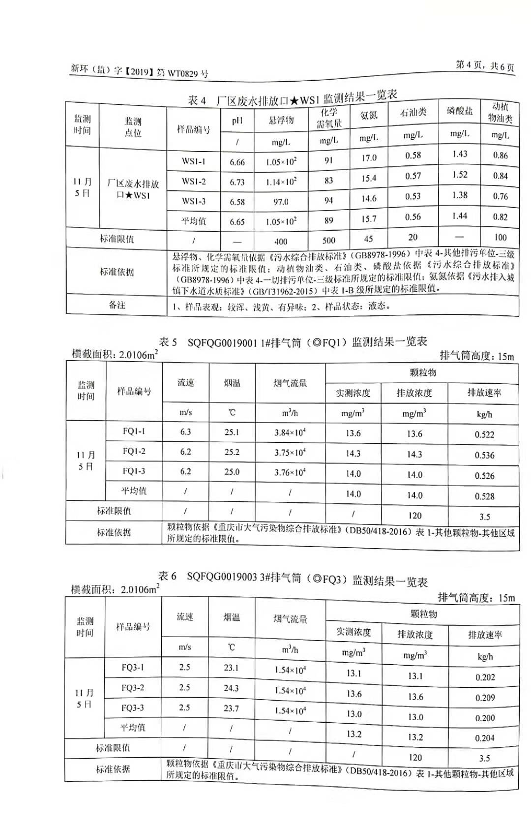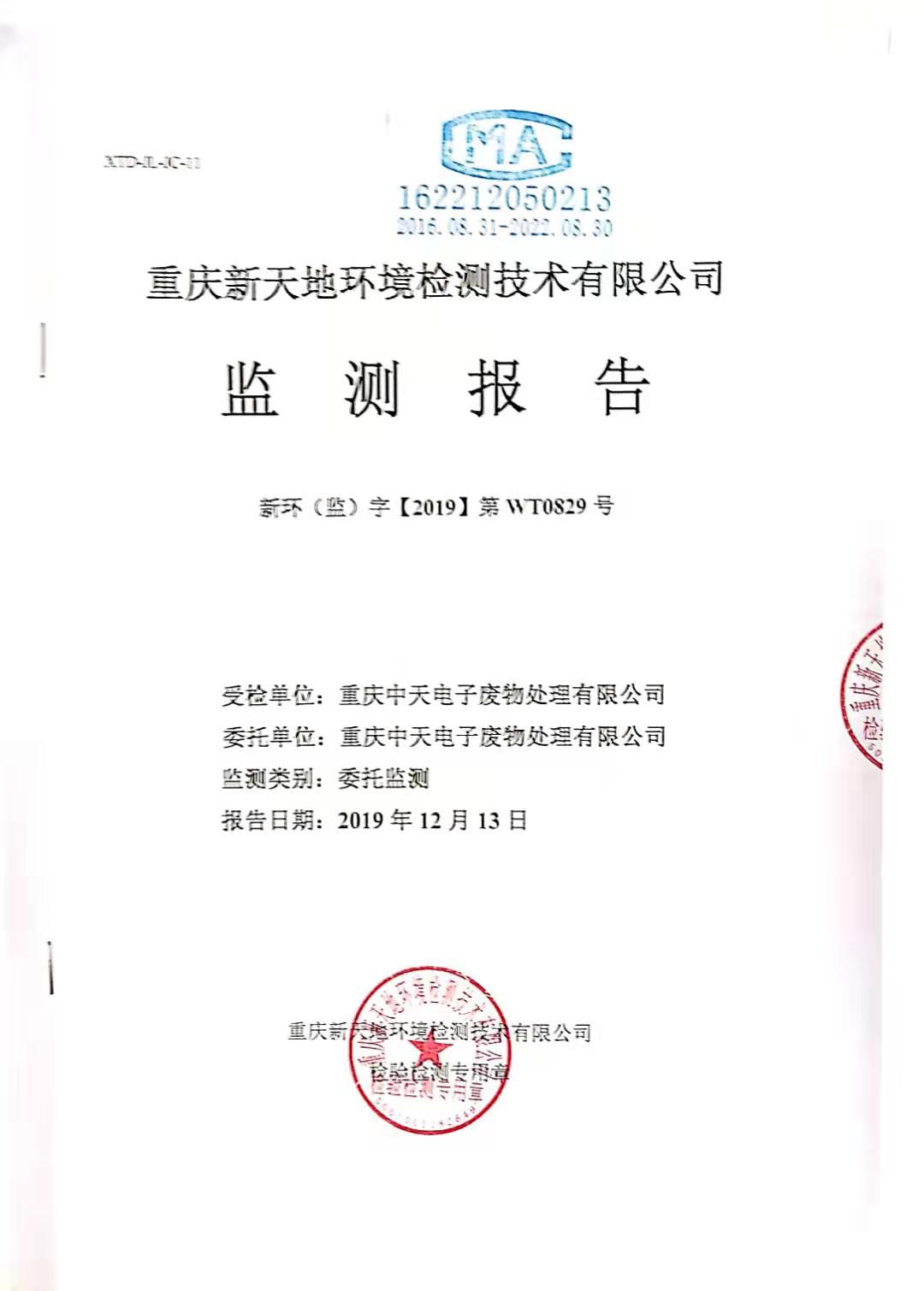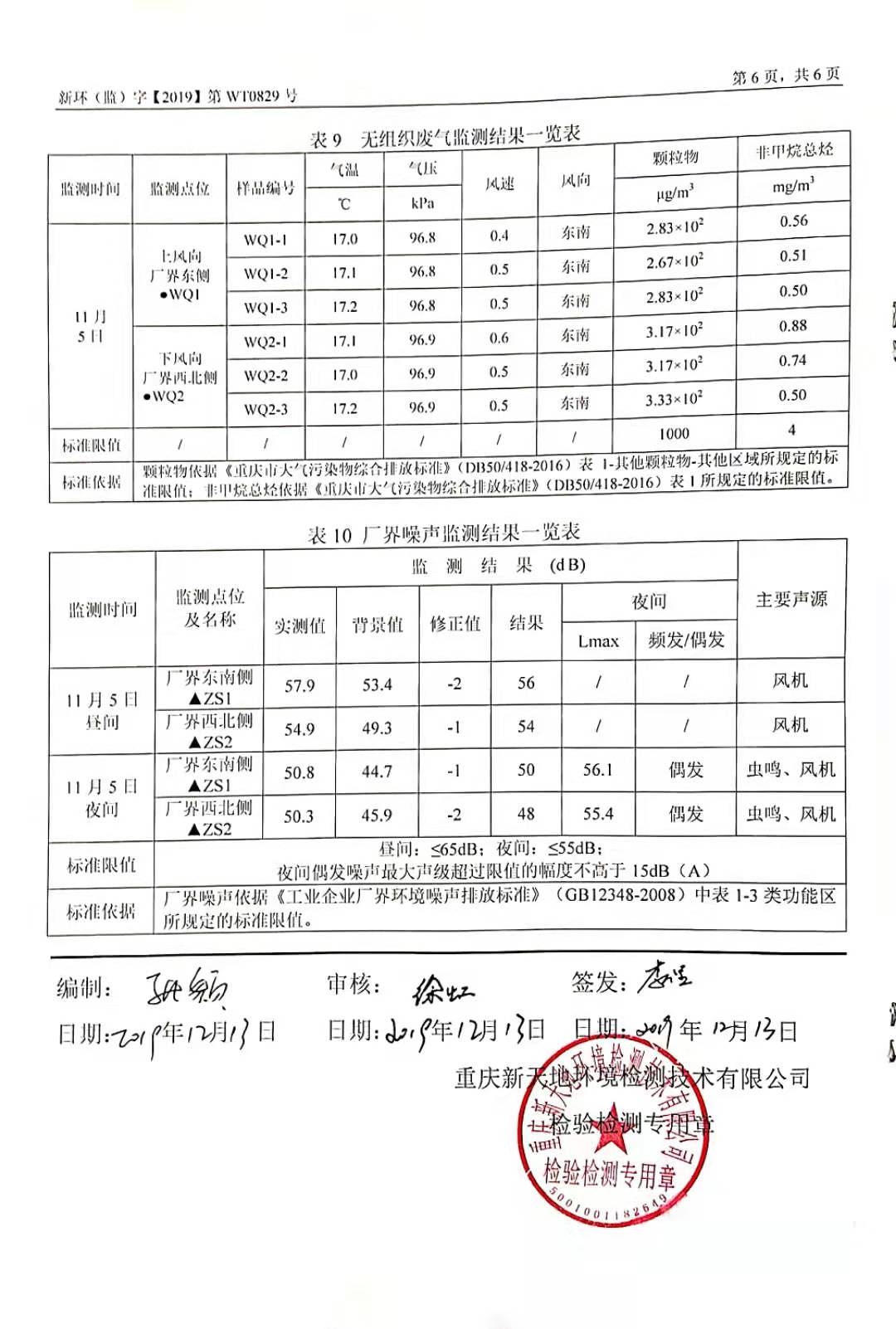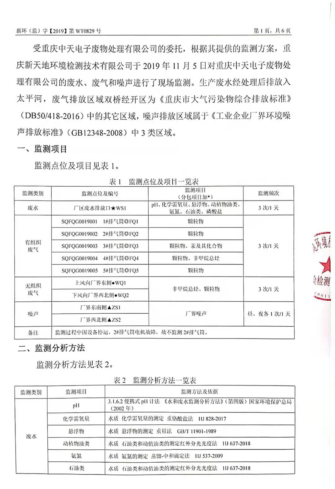 2019年11月5日,我司委托第三方機構進行了2019年度第四季度監測,監測項目為水氣聲、土壤,各項數據達標,現將監測報告公示如下: