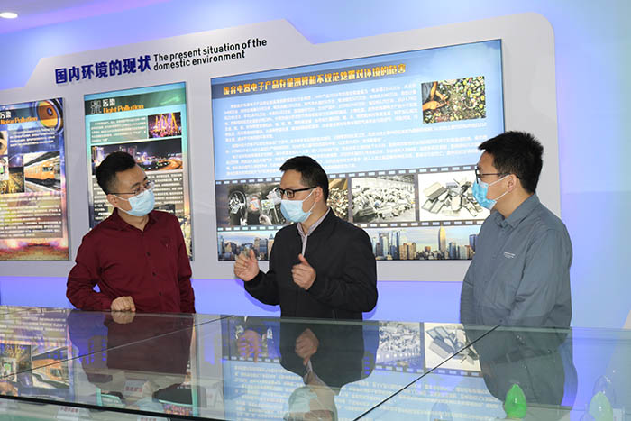 2020年4月15日上午,重慶市經信委應急管理處副處長莫曉勇一行蒞臨中天電廢參觀調研,中天電廢總經理彭會剛熱情接待了莫處長一行。