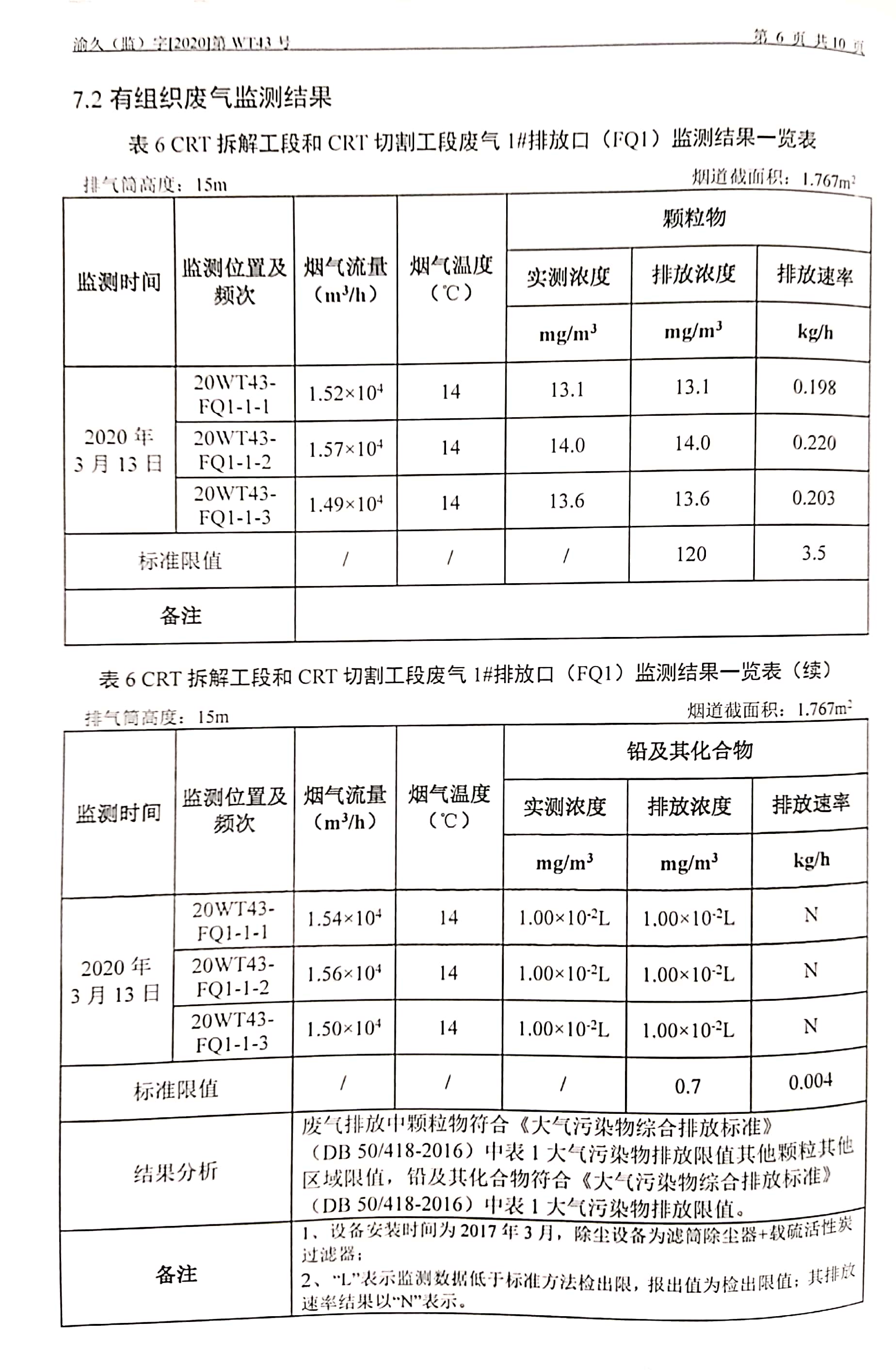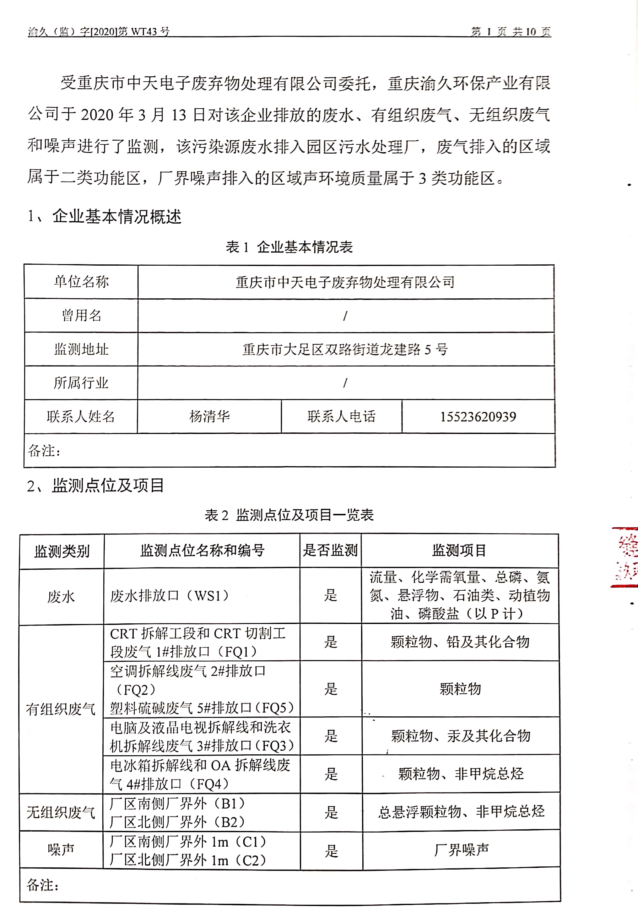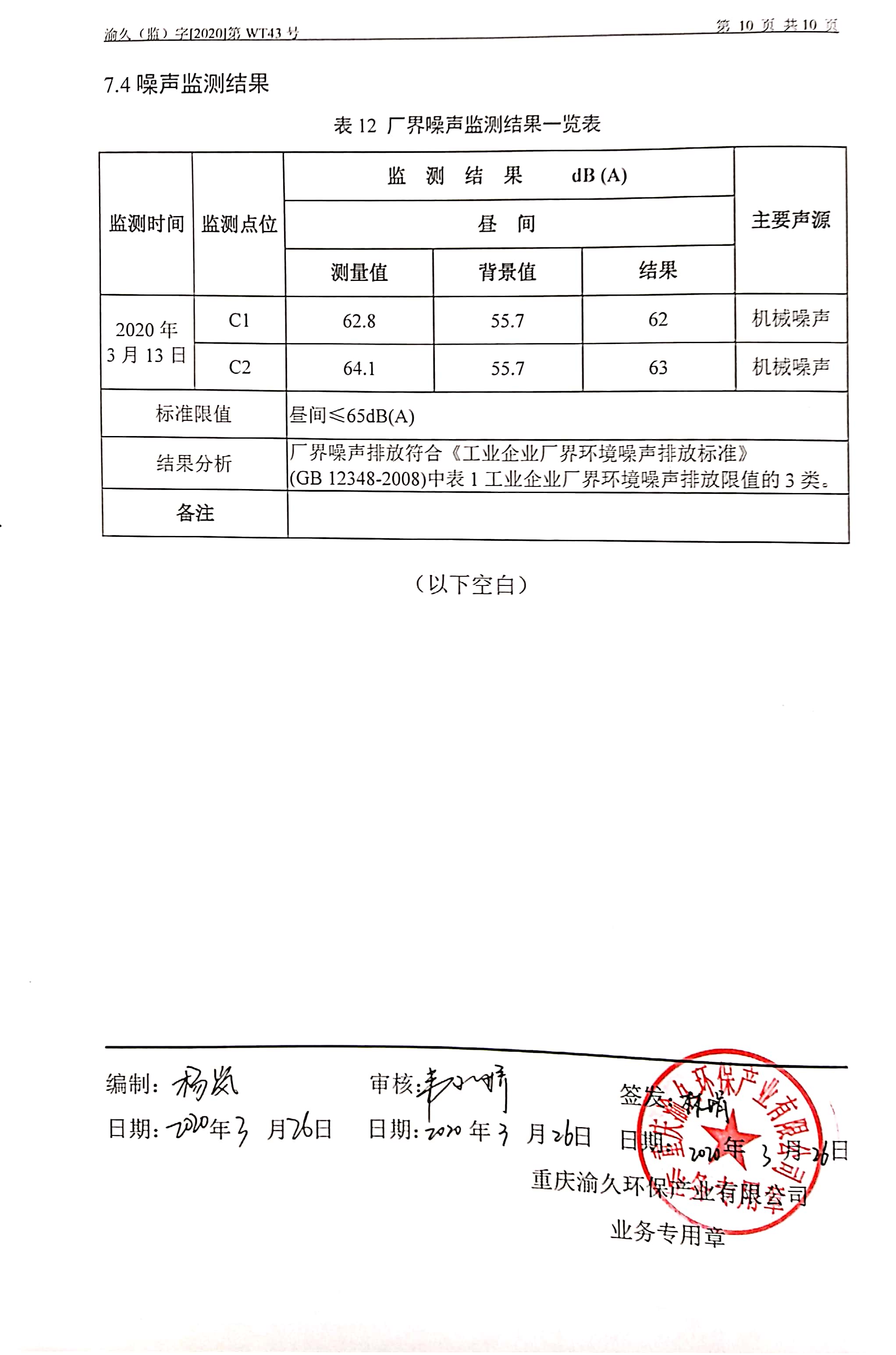2020年3月26日,我司委托第三方機構進行了2020年度第一季度監測,監測項目為水氣聲、土壤,各項數據達標,現將監測報告公示如下: