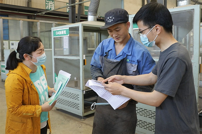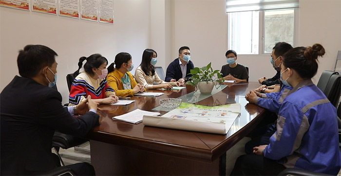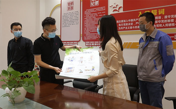 活動(dòng)以座談會(huì)的形式拉開序幕,吳主任與我司總經(jīng)理彭會(huì)剛現(xiàn)場(chǎng)交流當(dāng)前疫情形勢(shì)和企業(yè)復(fù)工情況。吳主任指出,企業(yè)在特殊時(shí)期既要抓生產(chǎn),也要重視疫情防控工作,實(shí)現(xiàn)穩(wěn)健經(jīng)營(yíng)。隨后,工作人員圍繞疫情防控措施和防疫期間注意事項(xiàng)等內(nèi)容,面對(duì)面向我司員工普及相關(guān)防疫常識(shí)、發(fā)放口罩。