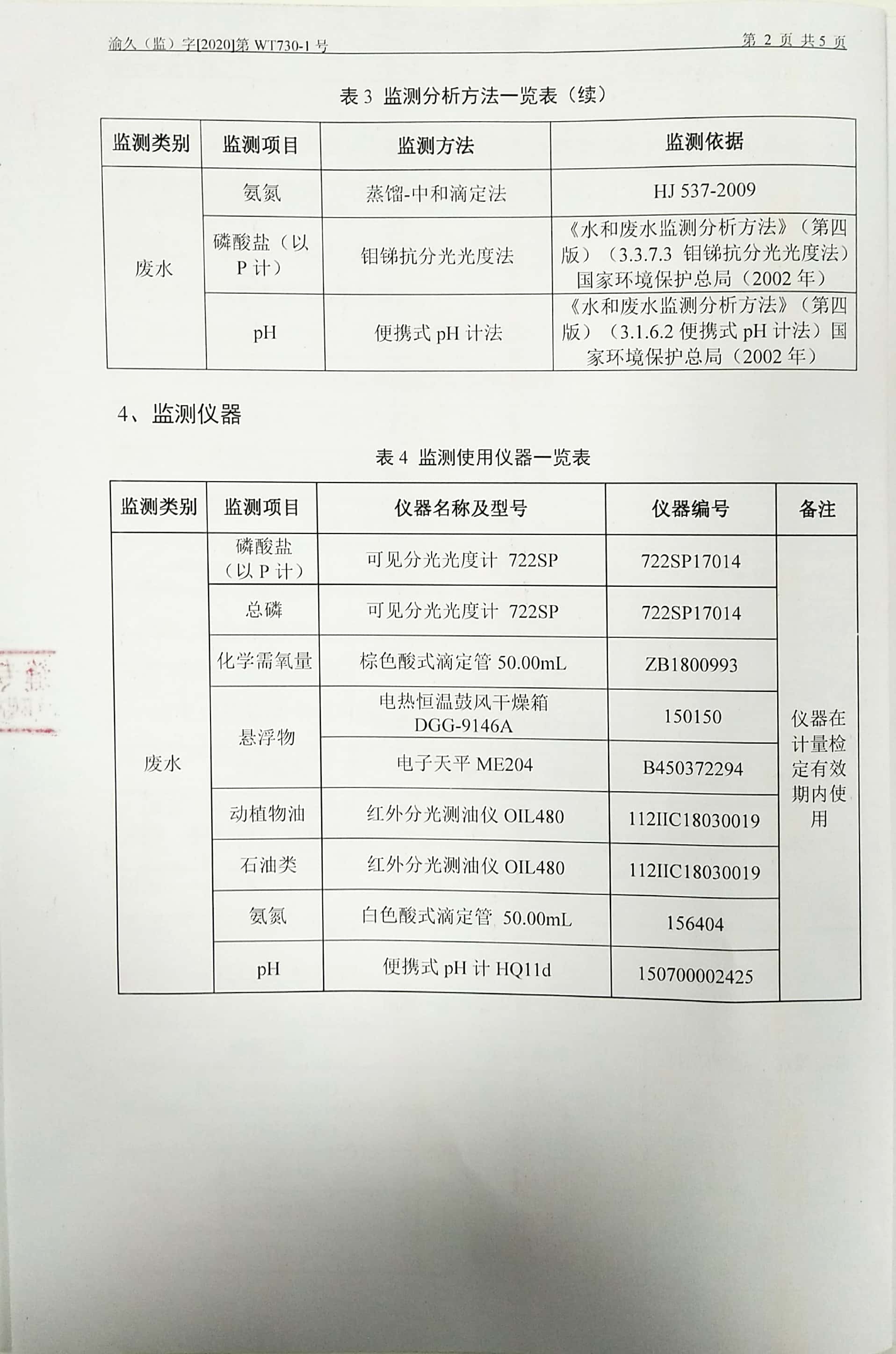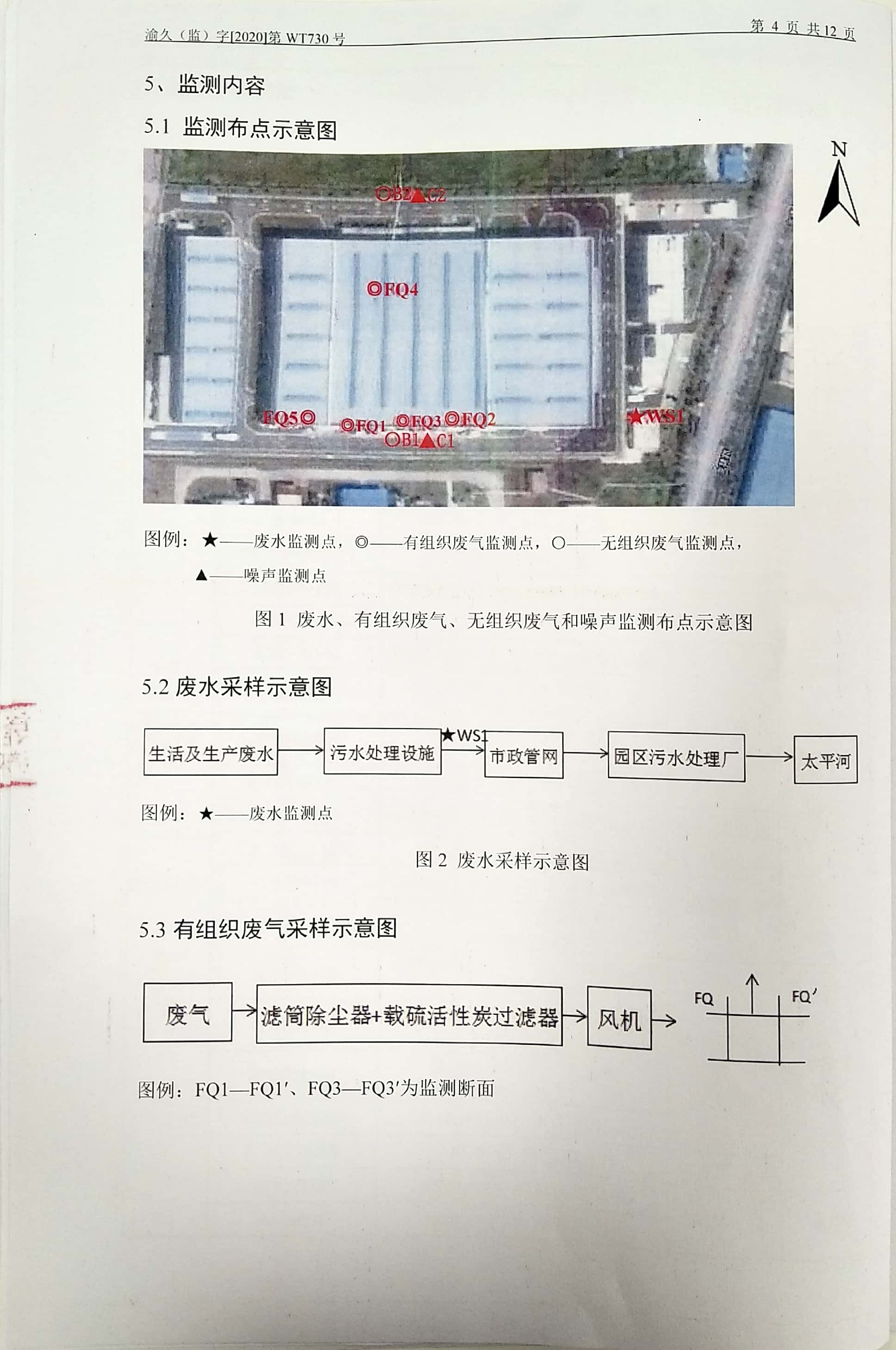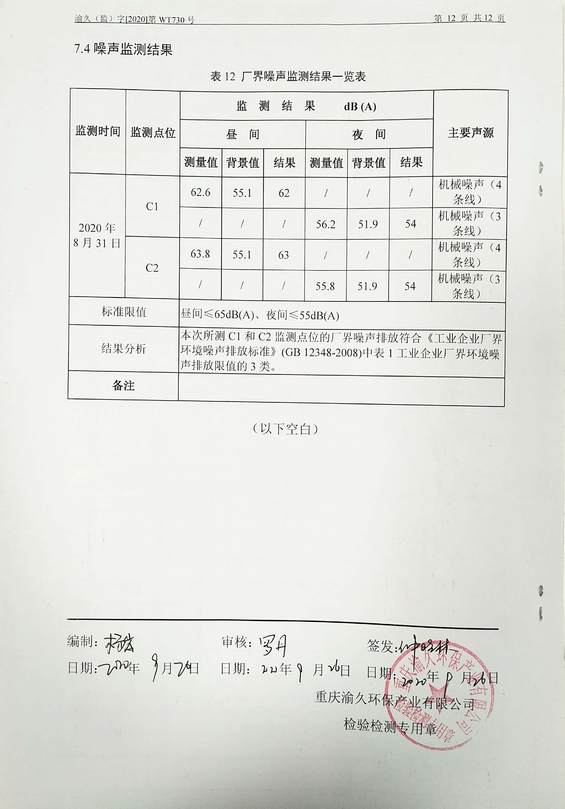 2020年9月26日,我司委托第三方機構進行了2020年度第三季度監測,監測項目為水氣聲,各項數據達標,現將監測報告公示如下: