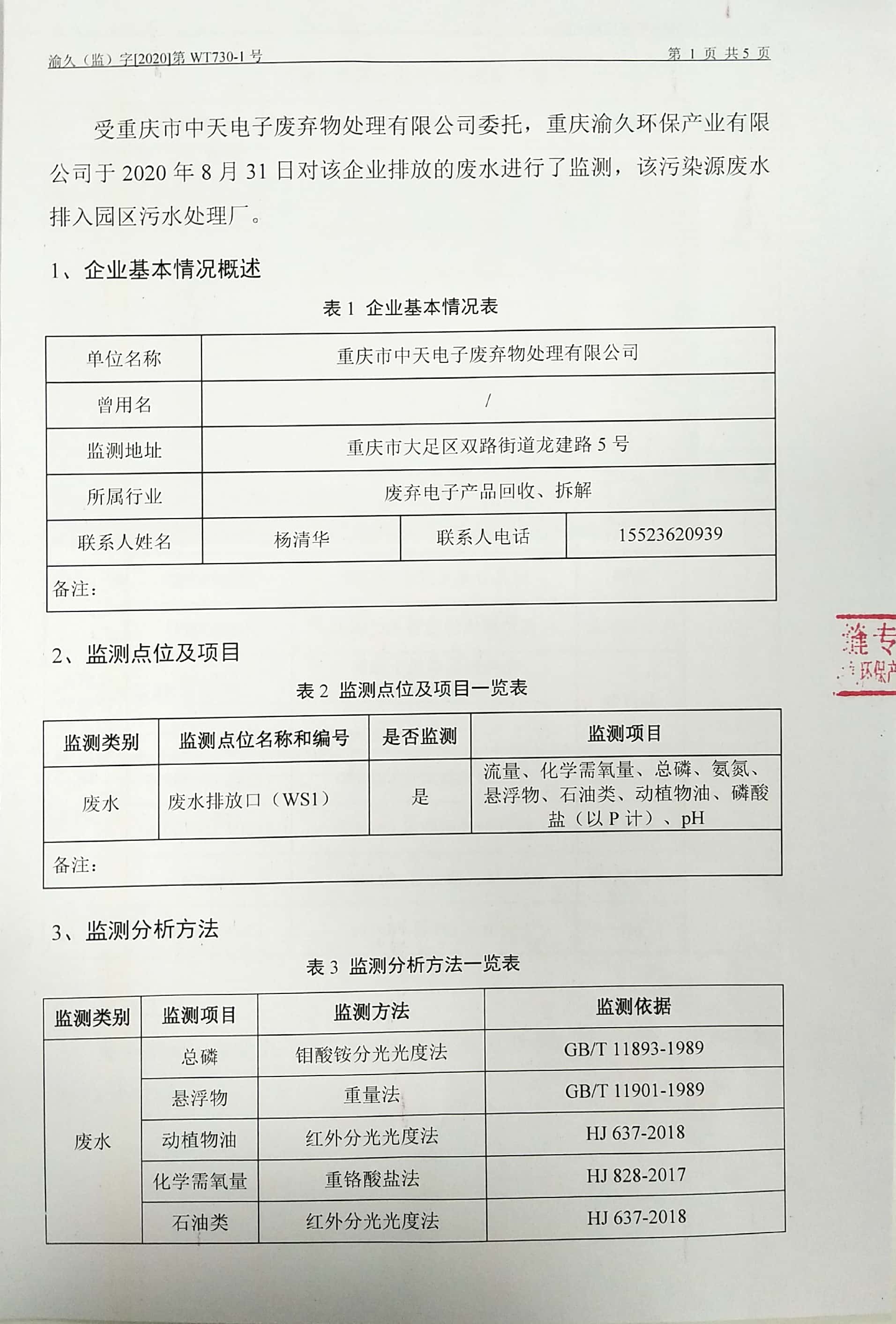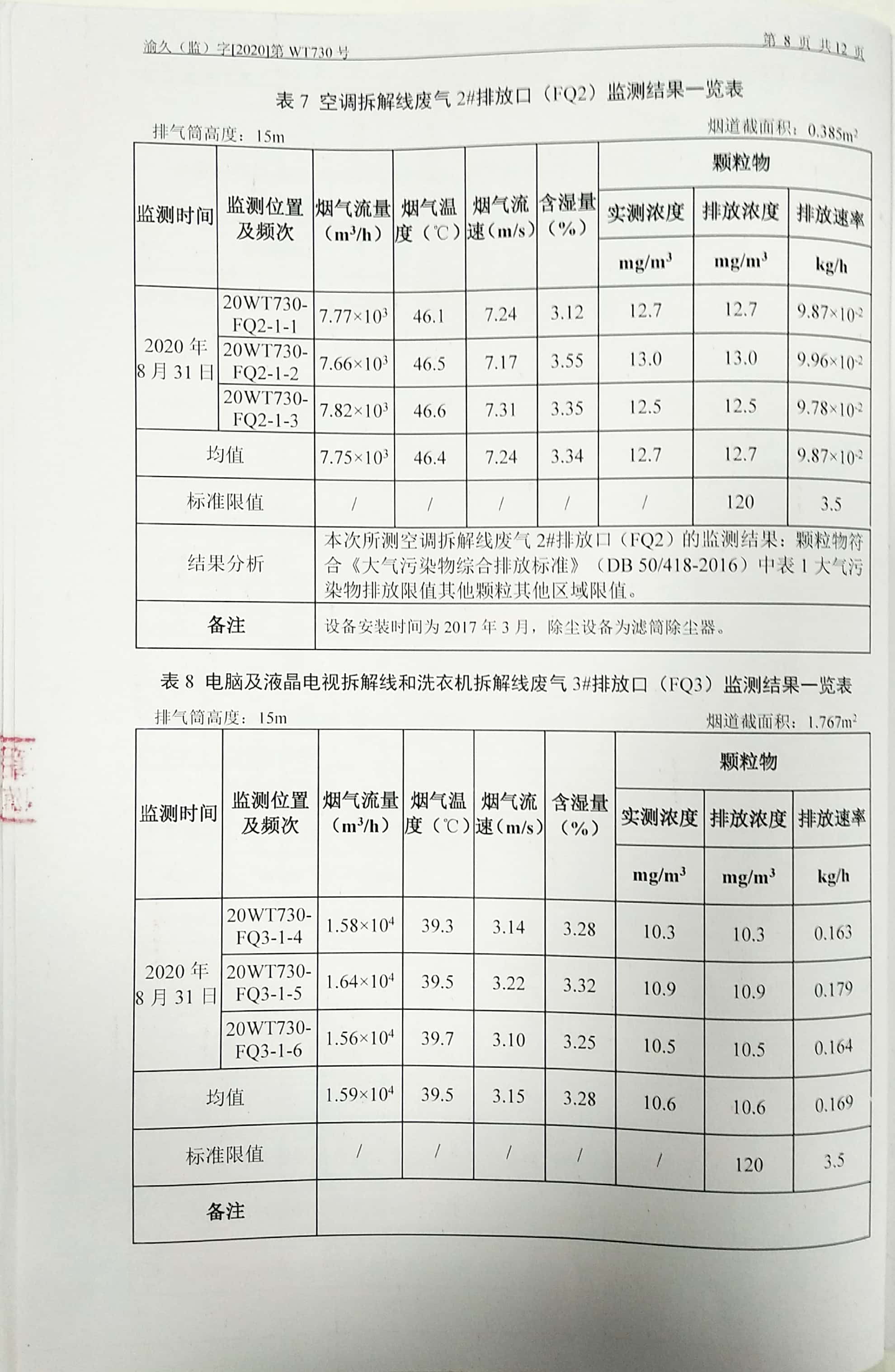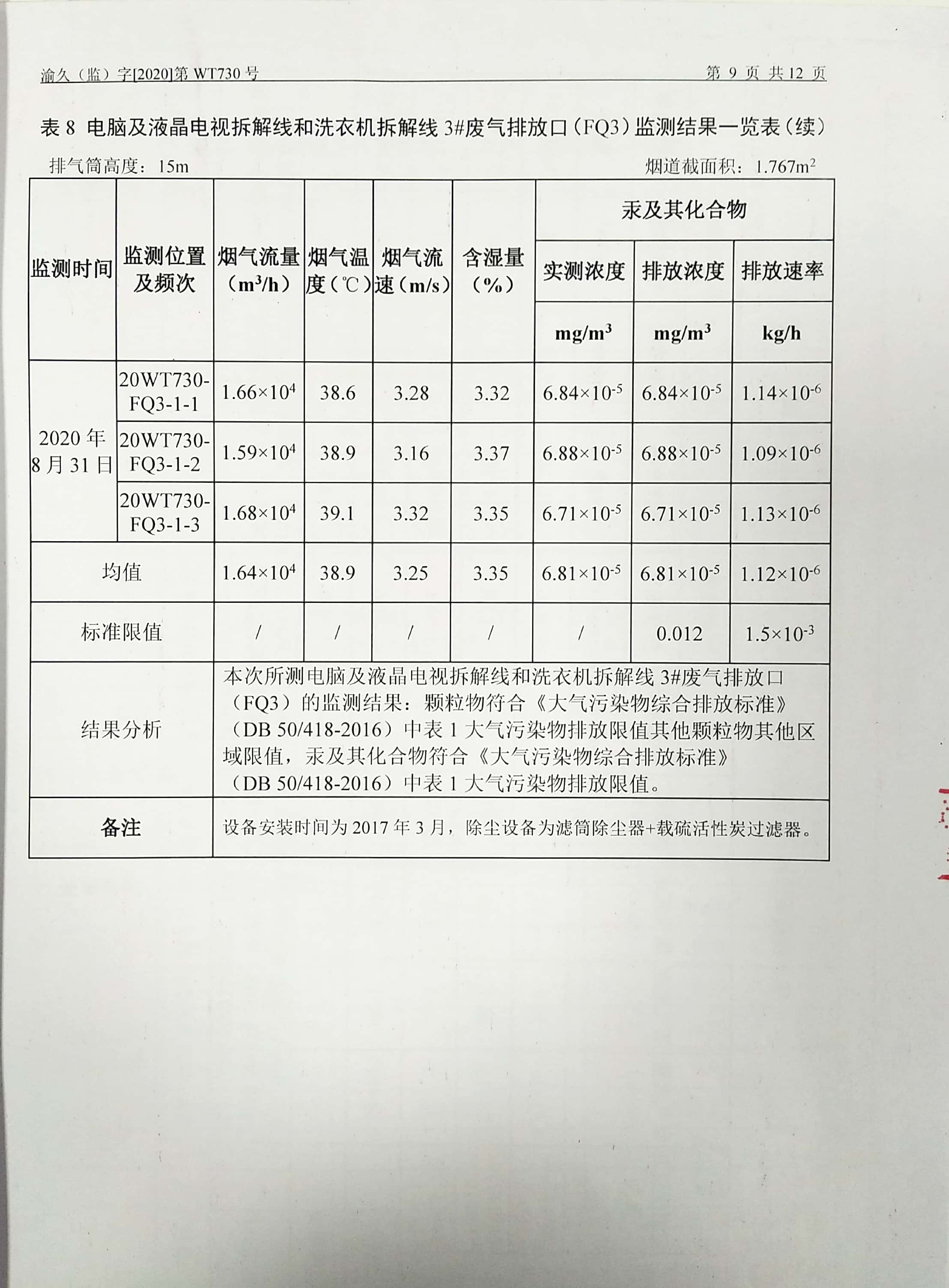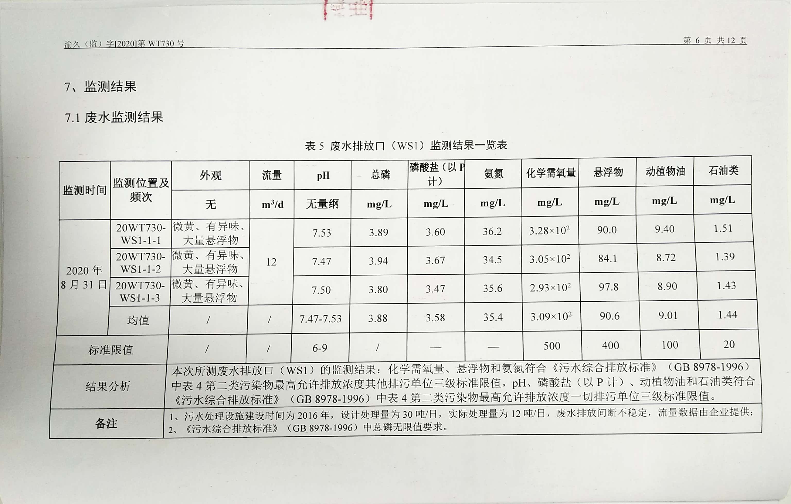 2020年9月26日,我司委托第三方機構進行了2020年度第三季度監測,監測項目為水氣聲,各項數據達標,現將監測報告公示如下: