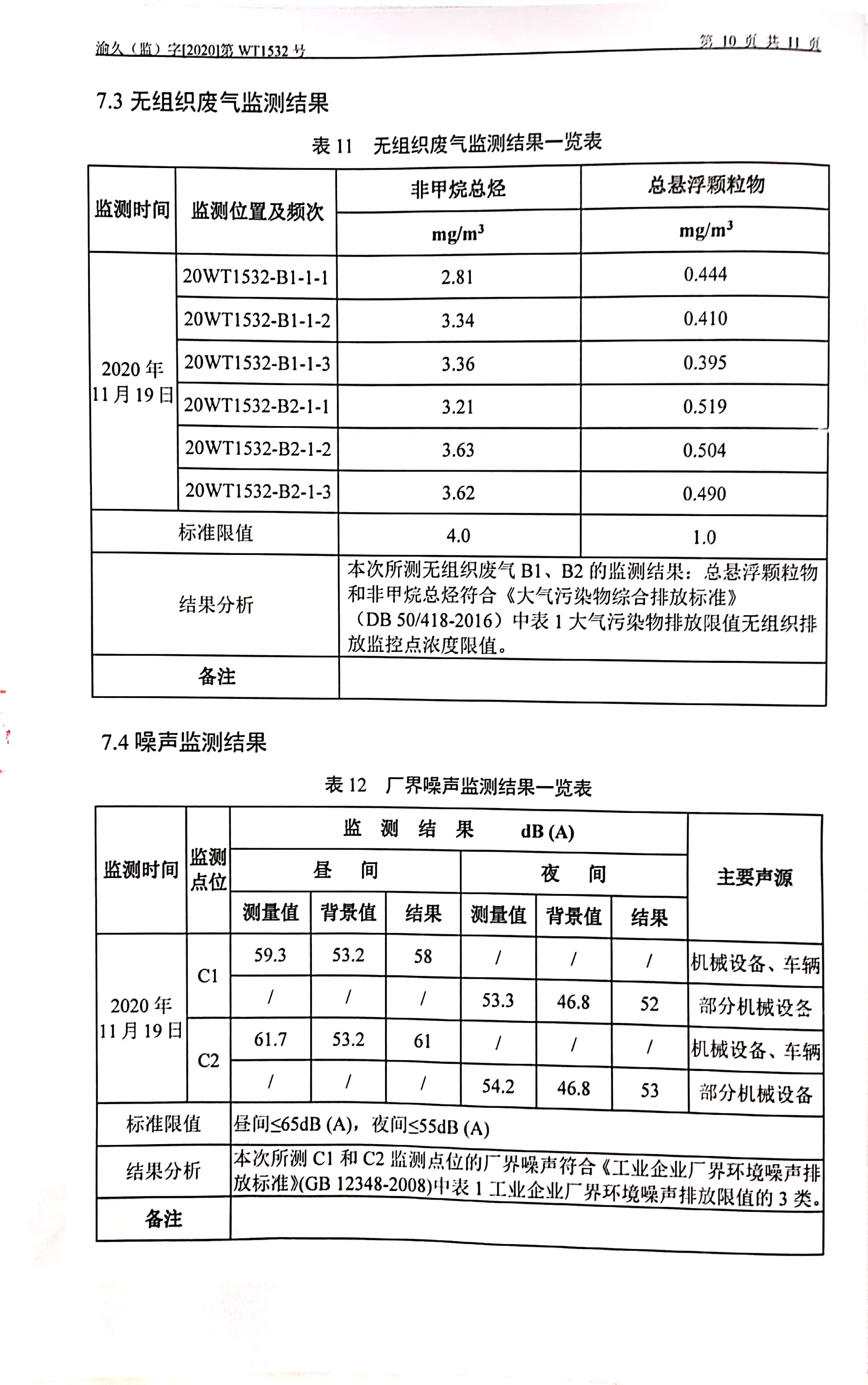 2020年12月18日,我司委托第三方機構進行了2020年度第四季度監測,監測項目為水氣聲,各項數據達標,現將監測報告公示如下: