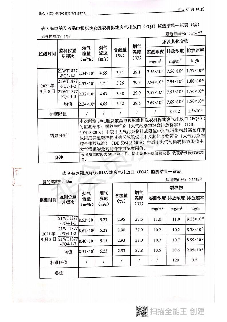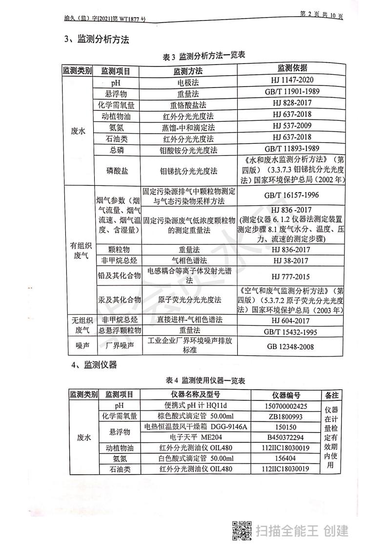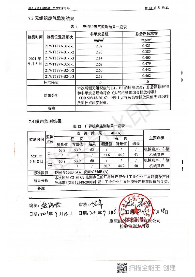 2021年9月8日,我司委托第三方機構進行了2021年度第三季度監測,監測項目為水氣聲,各項數據達標,現將監測報告公示如下: