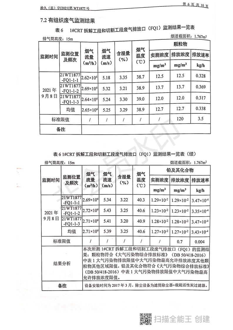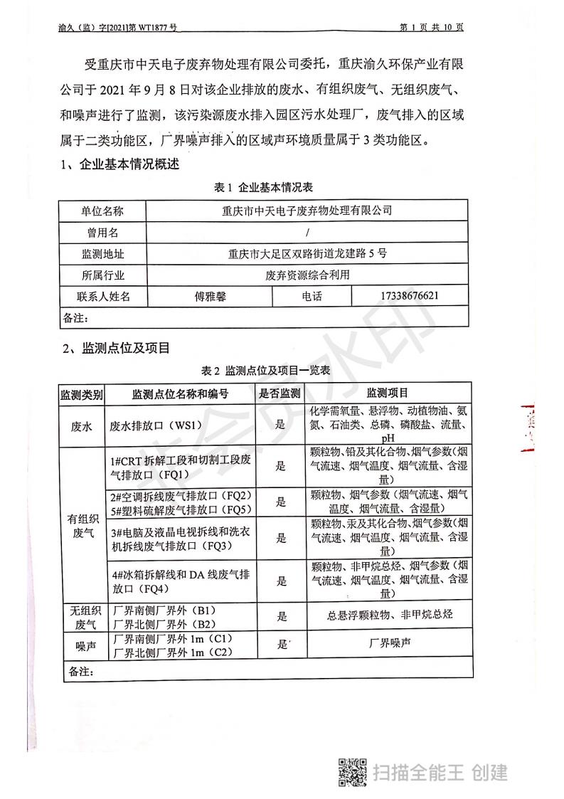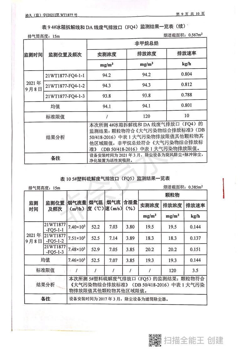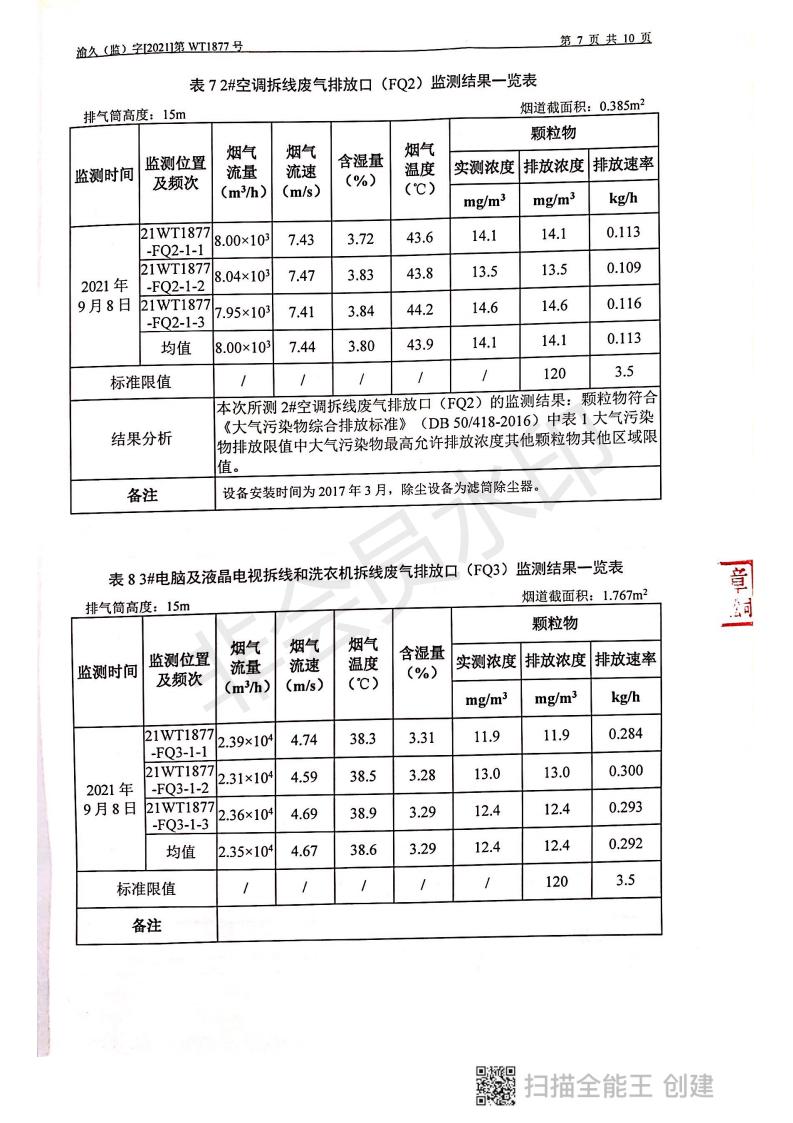 2021年9月8日,我司委托第三方機構進行了2021年度第三季度監測,監測項目為水氣聲,各項數據達標,現將監測報告公示如下: