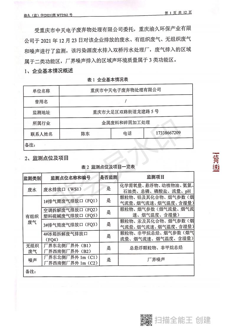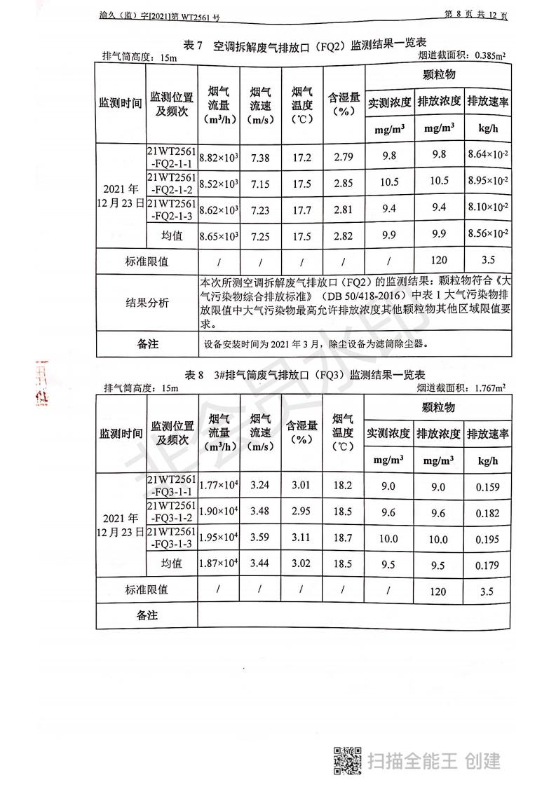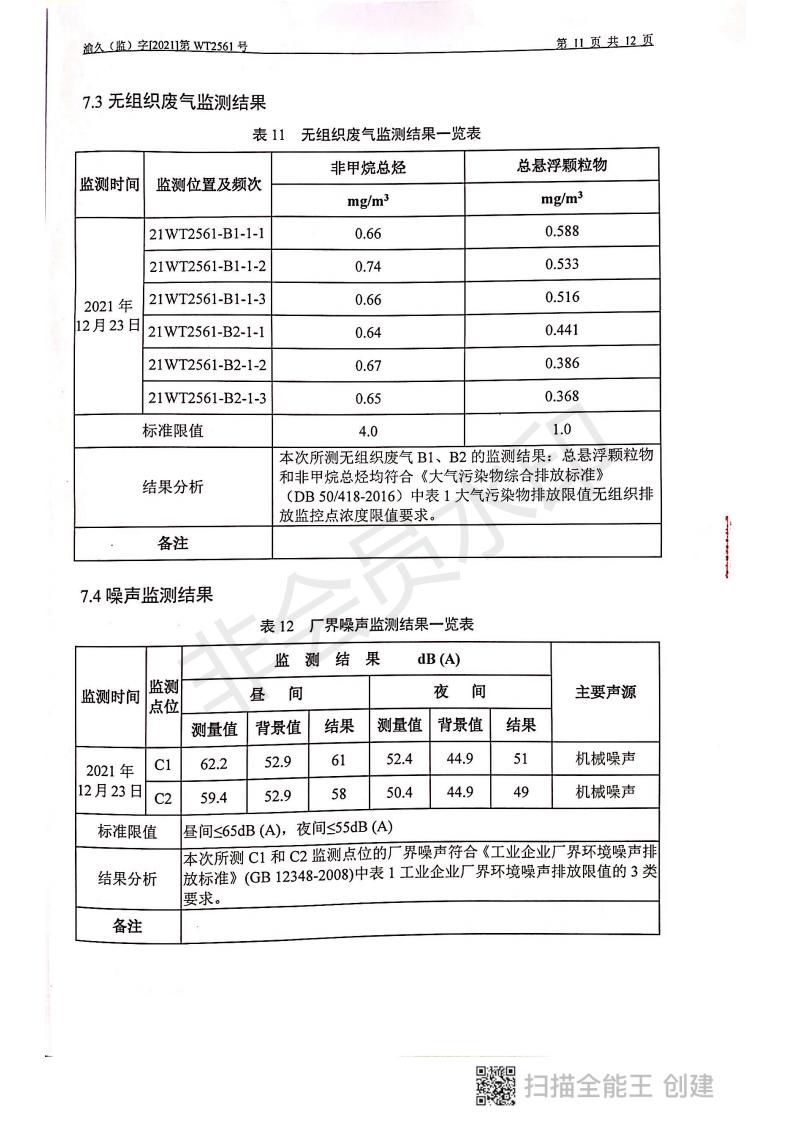2021年12月23日,我司委托第三方機(jī)構(gòu)進(jìn)行了2021年度第四季度監(jiān)測,監(jiān)測項(xiàng)目為水氣聲,各項(xiàng)數(shù)據(jù)達(dá)標(biāo),現(xiàn)將監(jiān)測報(bào)告公示如下: