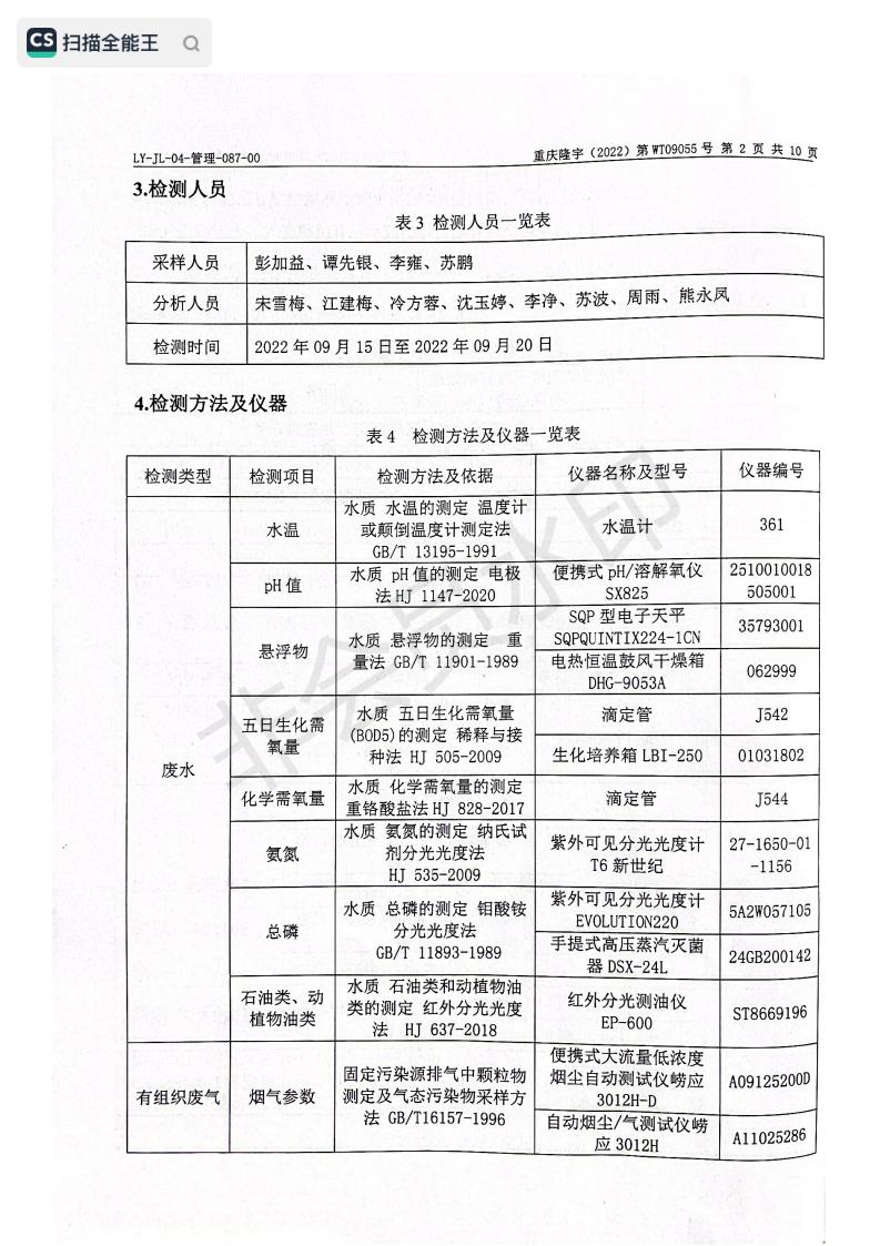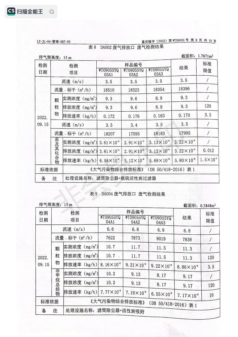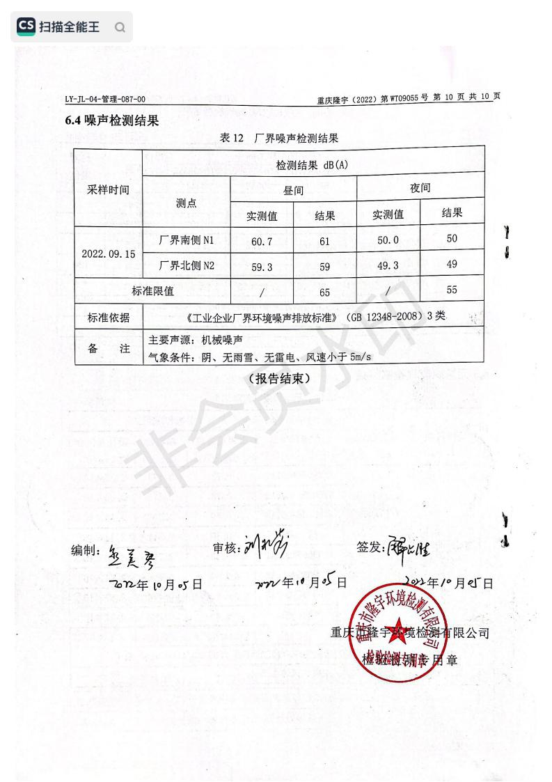 2022年9月15日,我司委托第三方機構進行了2022年度第三季度監測,監測項目為水氣聲,各項數據達標,現將監測報告公示如下: