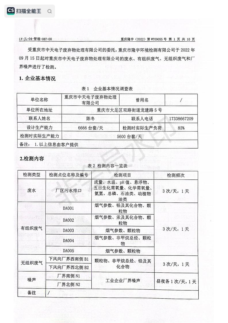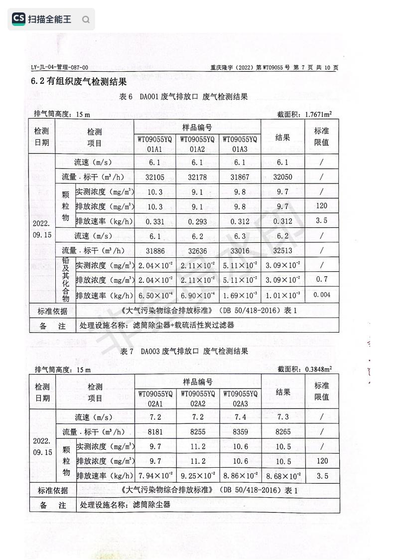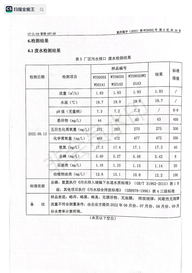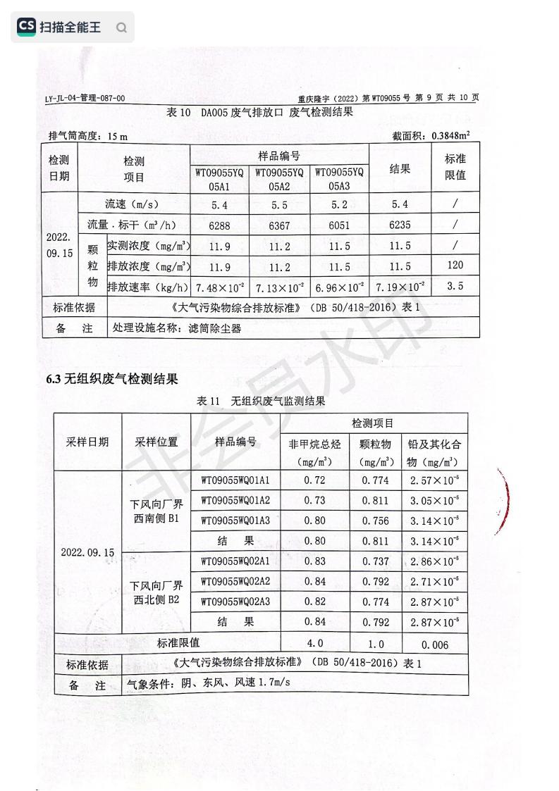 2022年9月15日,我司委托第三方機構進行了2022年度第三季度監測,監測項目為水氣聲,各項數據達標,現將監測報告公示如下: