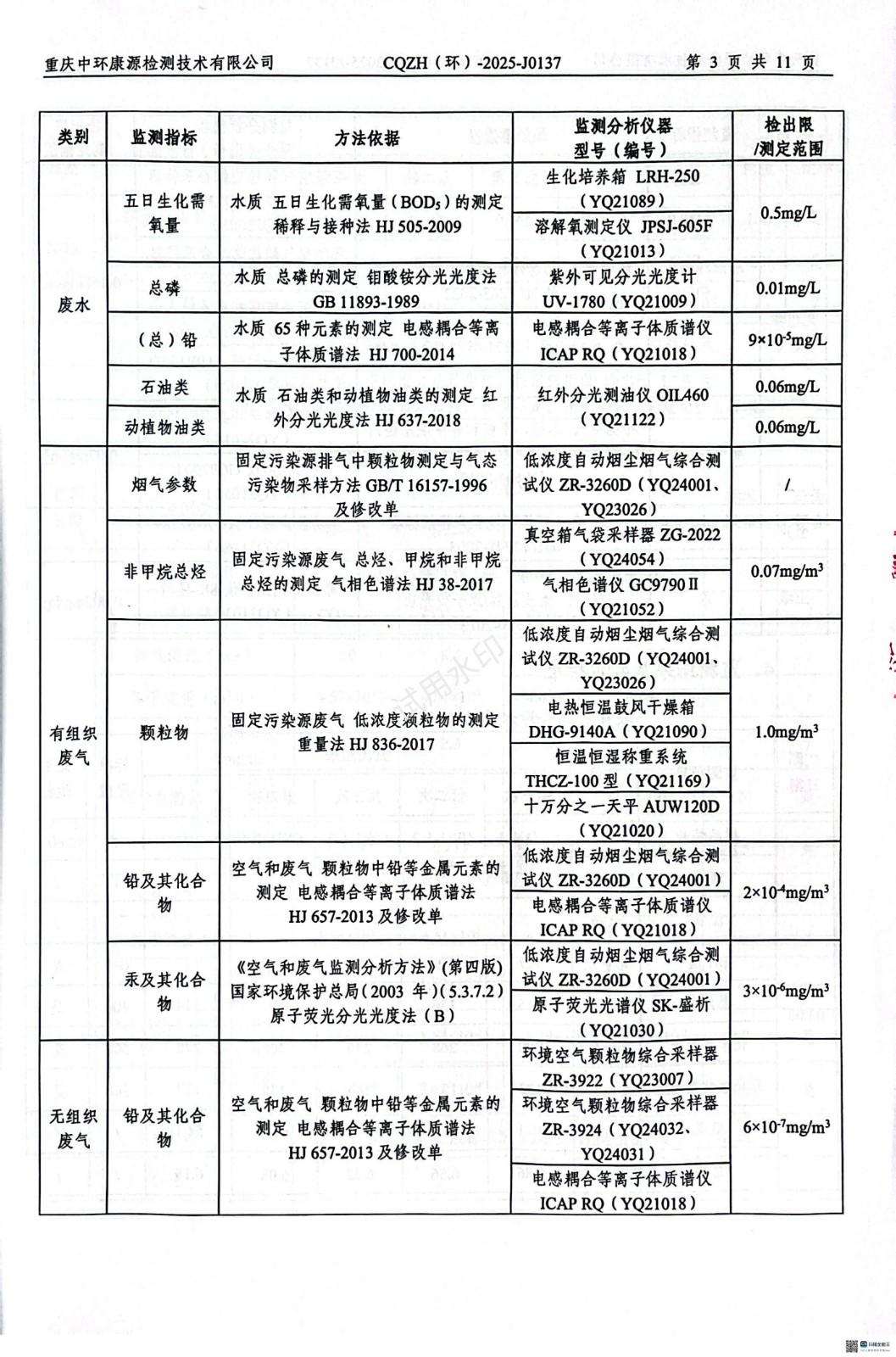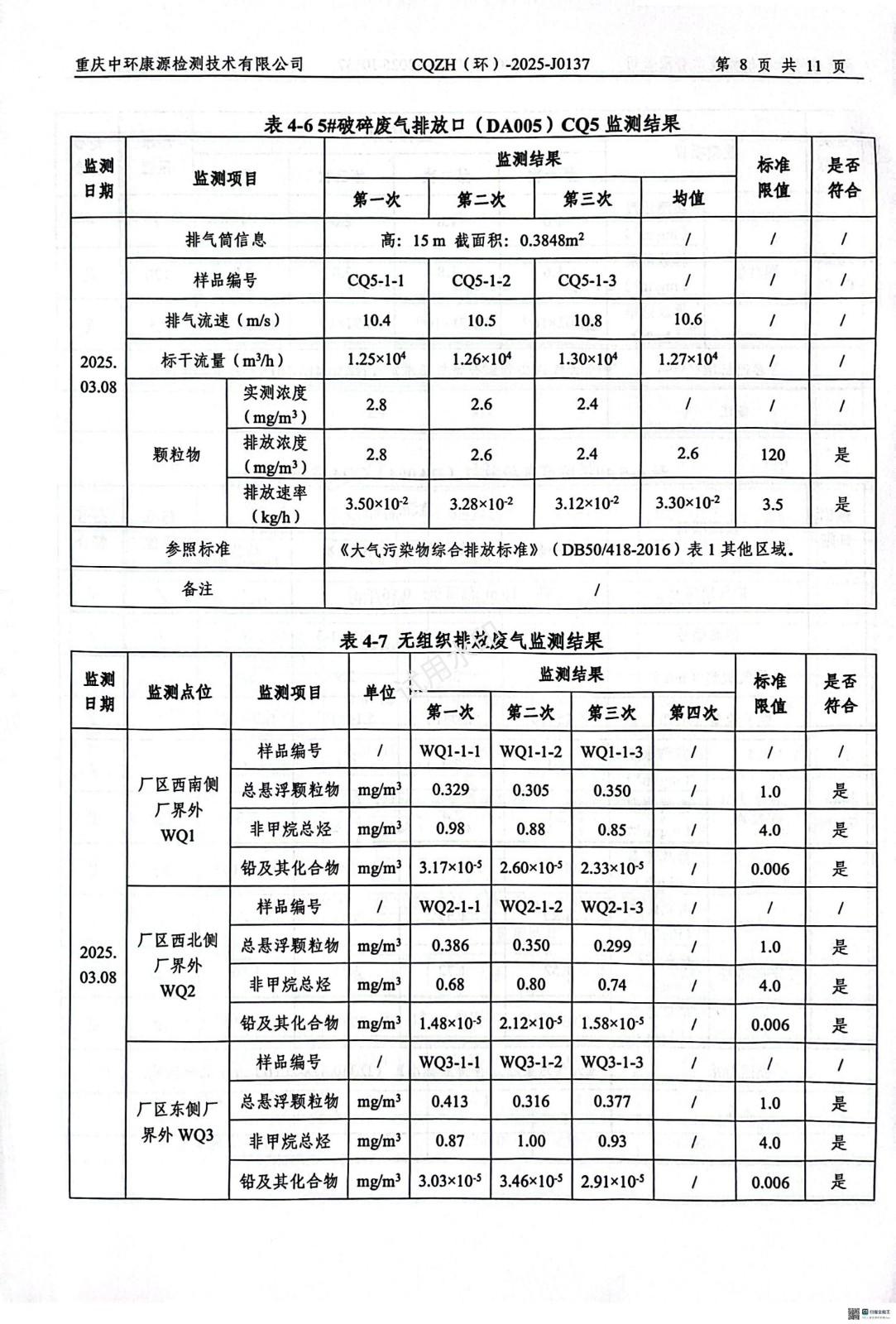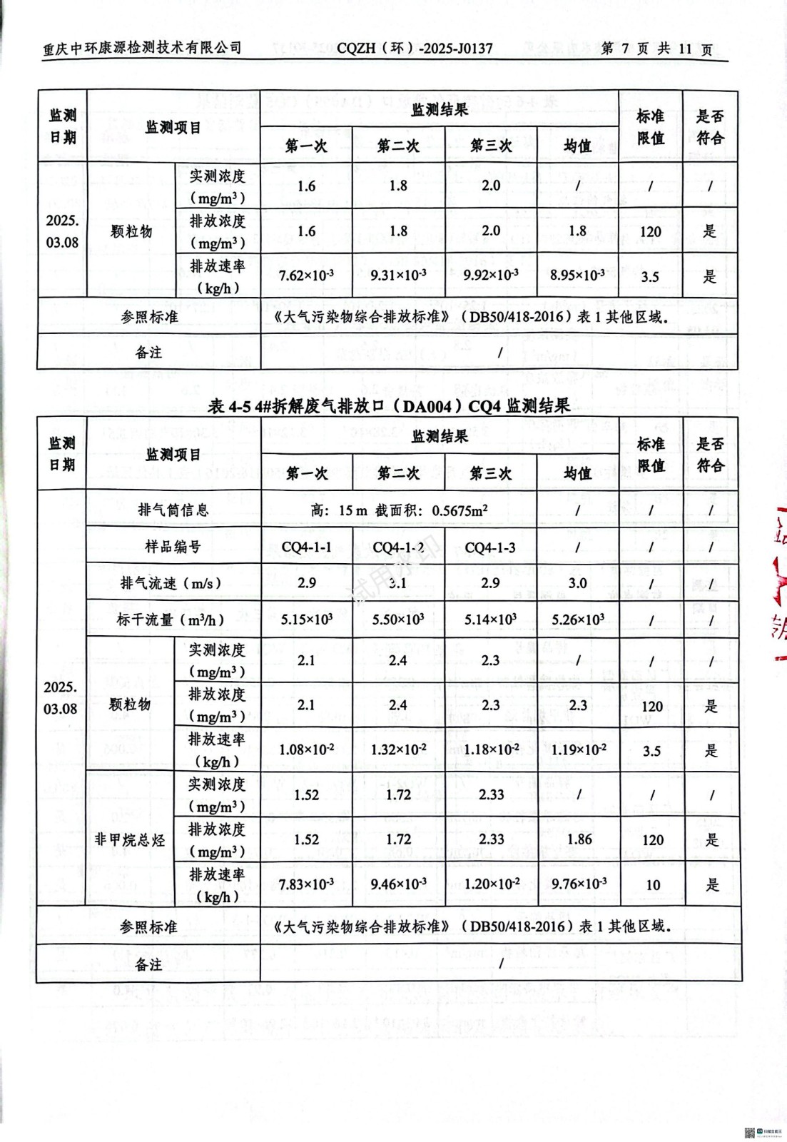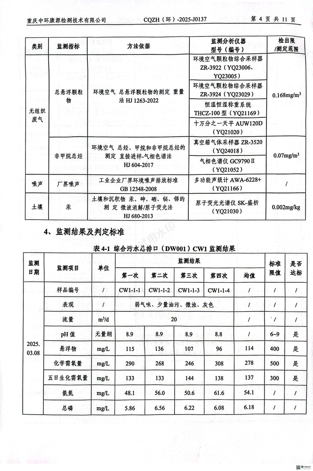 2025年3月7日,我司委托第三方機構進行了2025年度第一季度監測,監測項目為水氣聲,各項數據達標,現將監測報告公示如下: