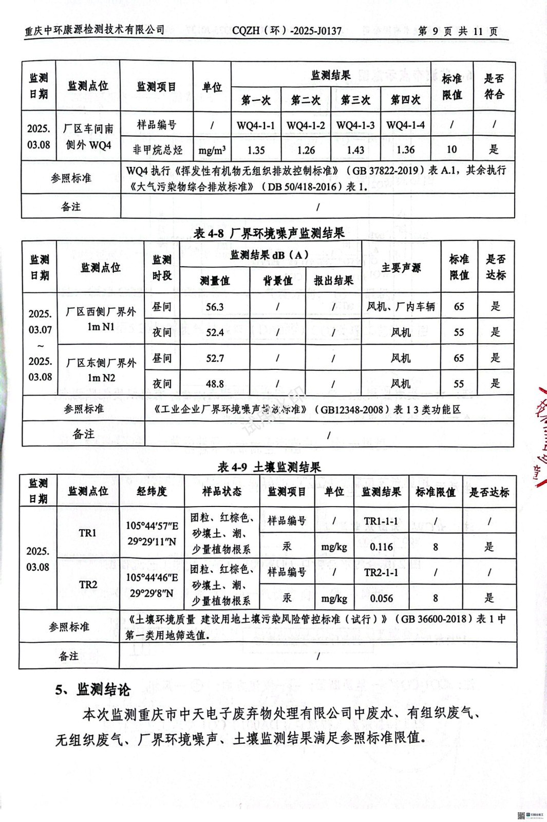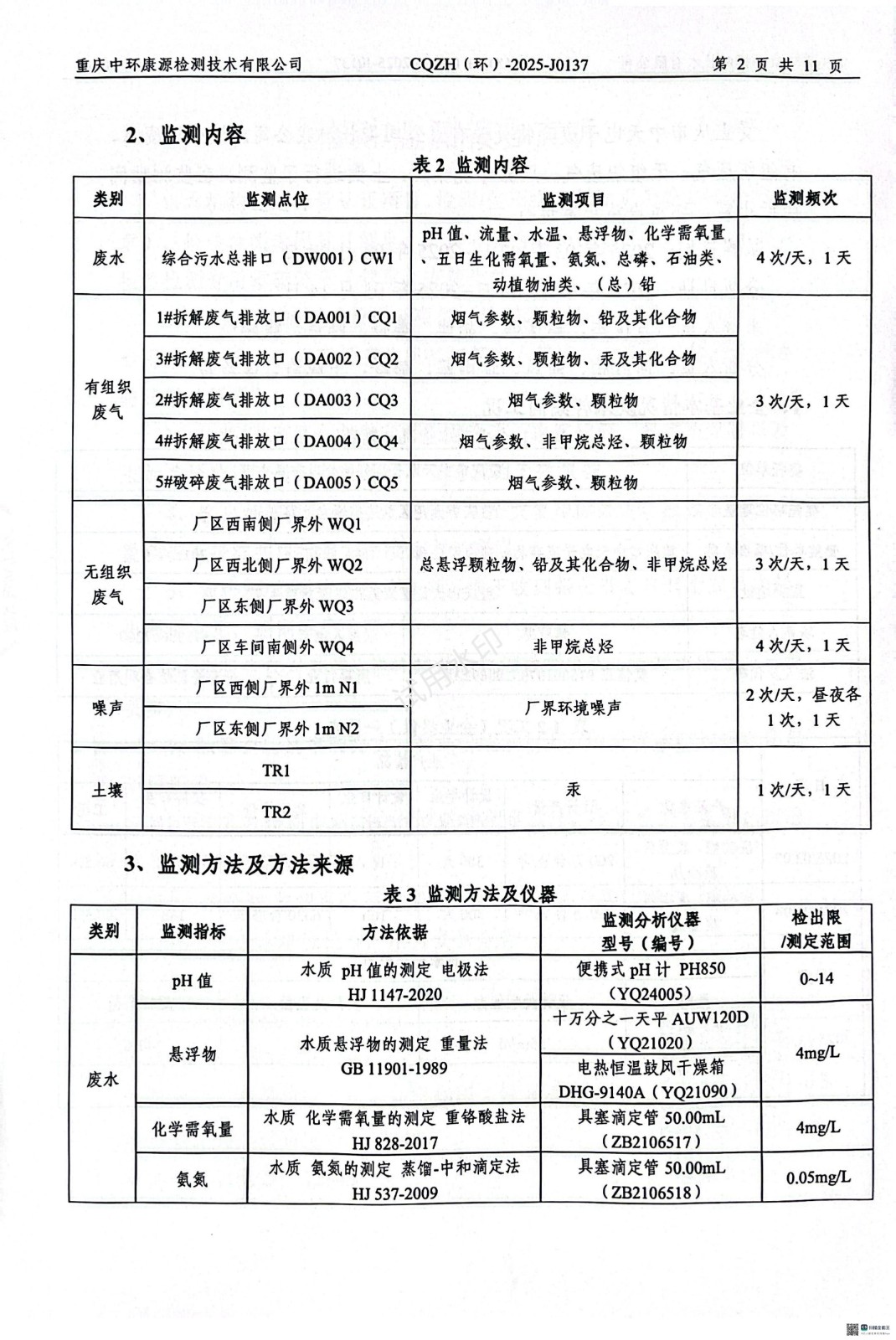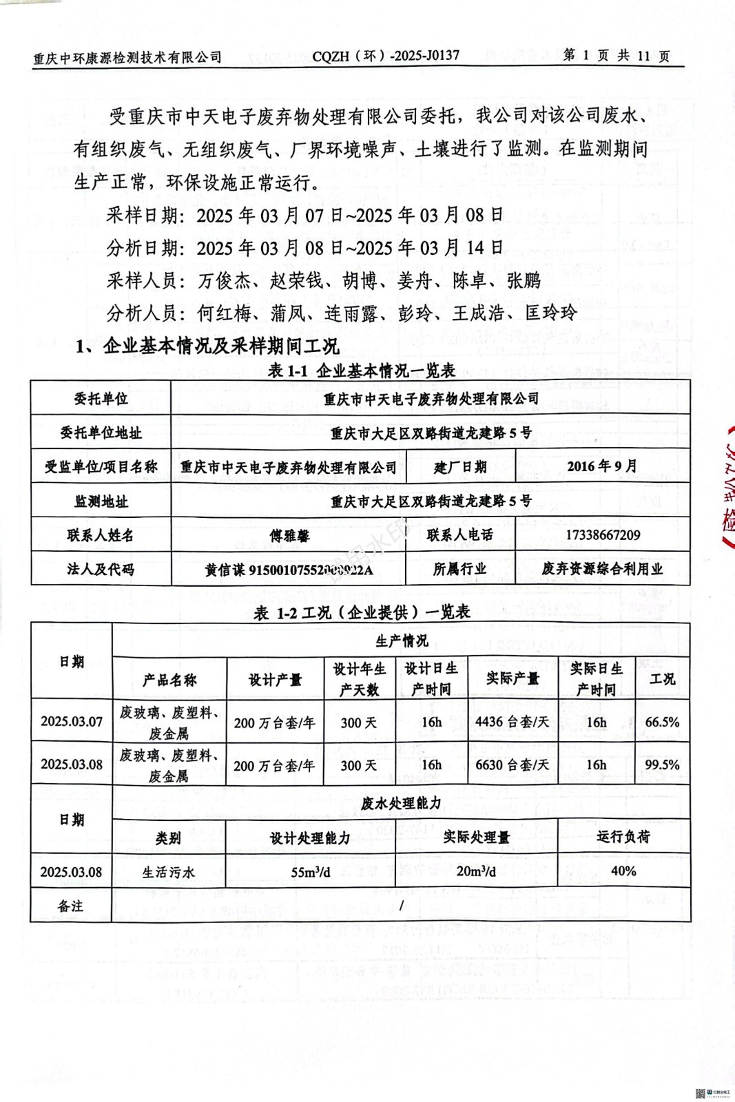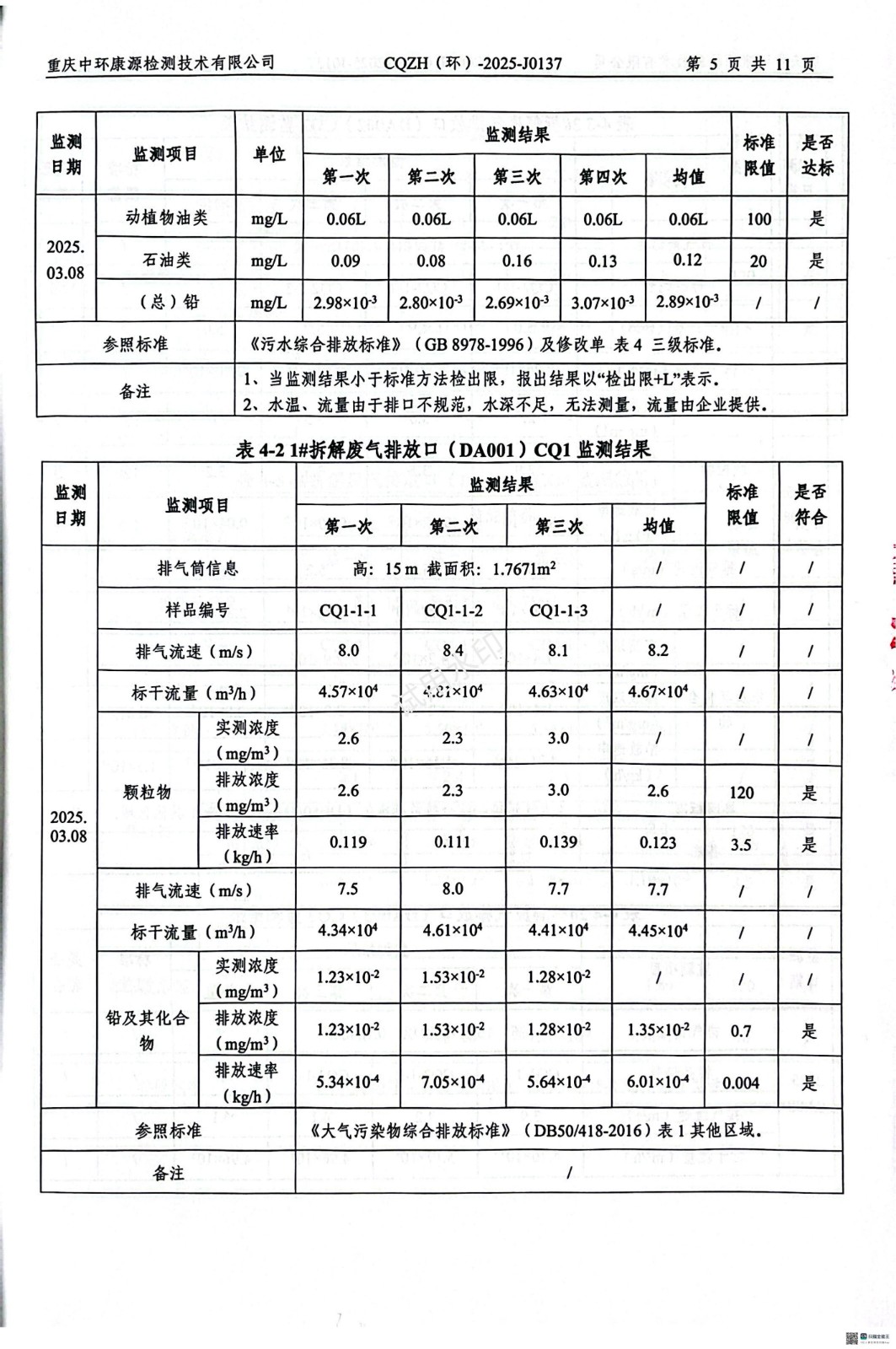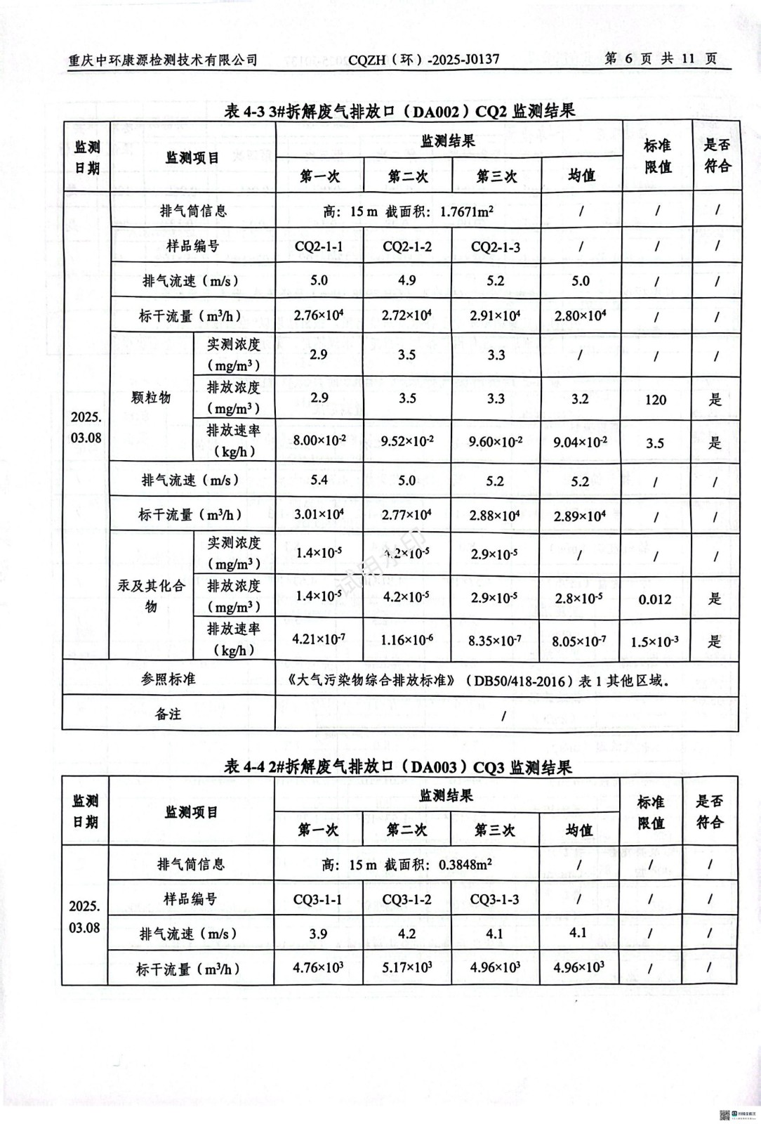 2025年3月7日,我司委托第三方機構進行了2025年度第一季度監測,監測項目為水氣聲,各項數據達標,現將監測報告公示如下: