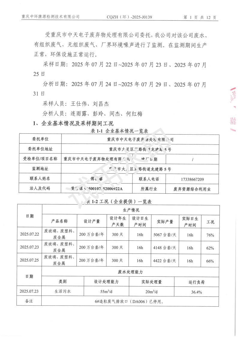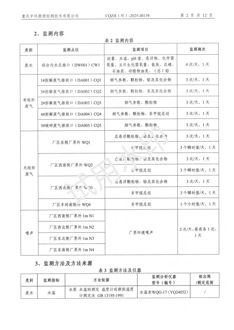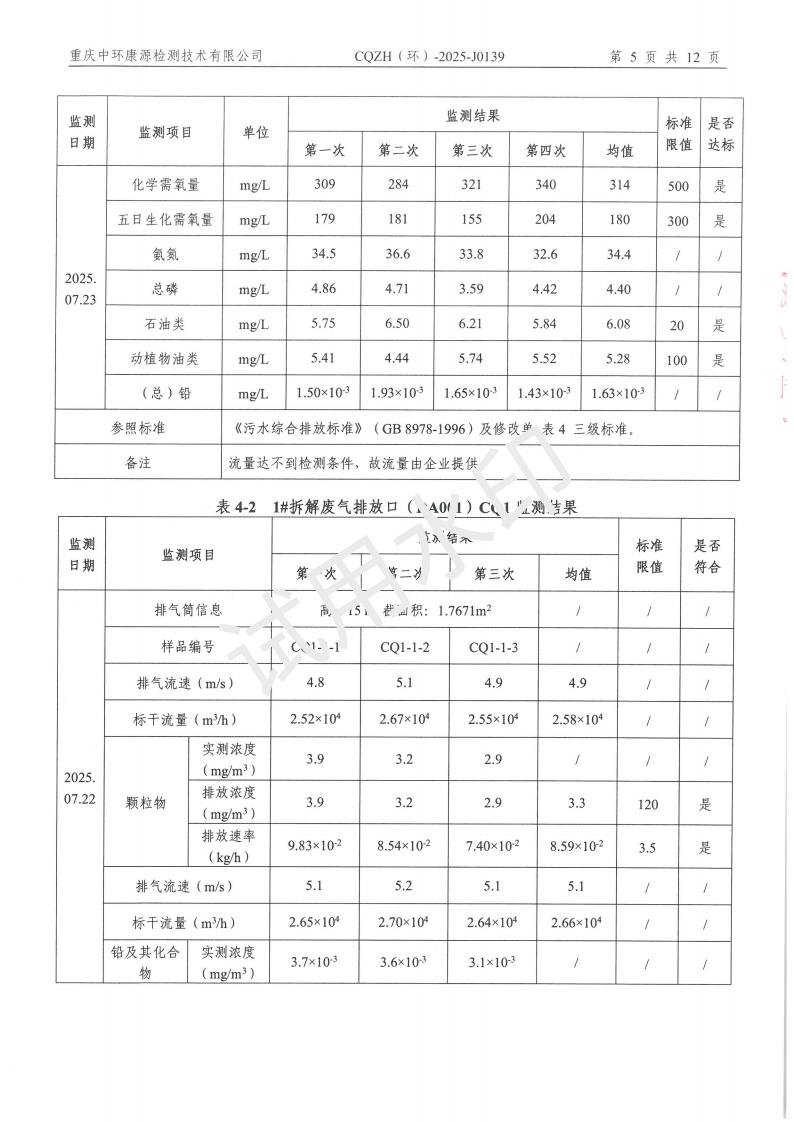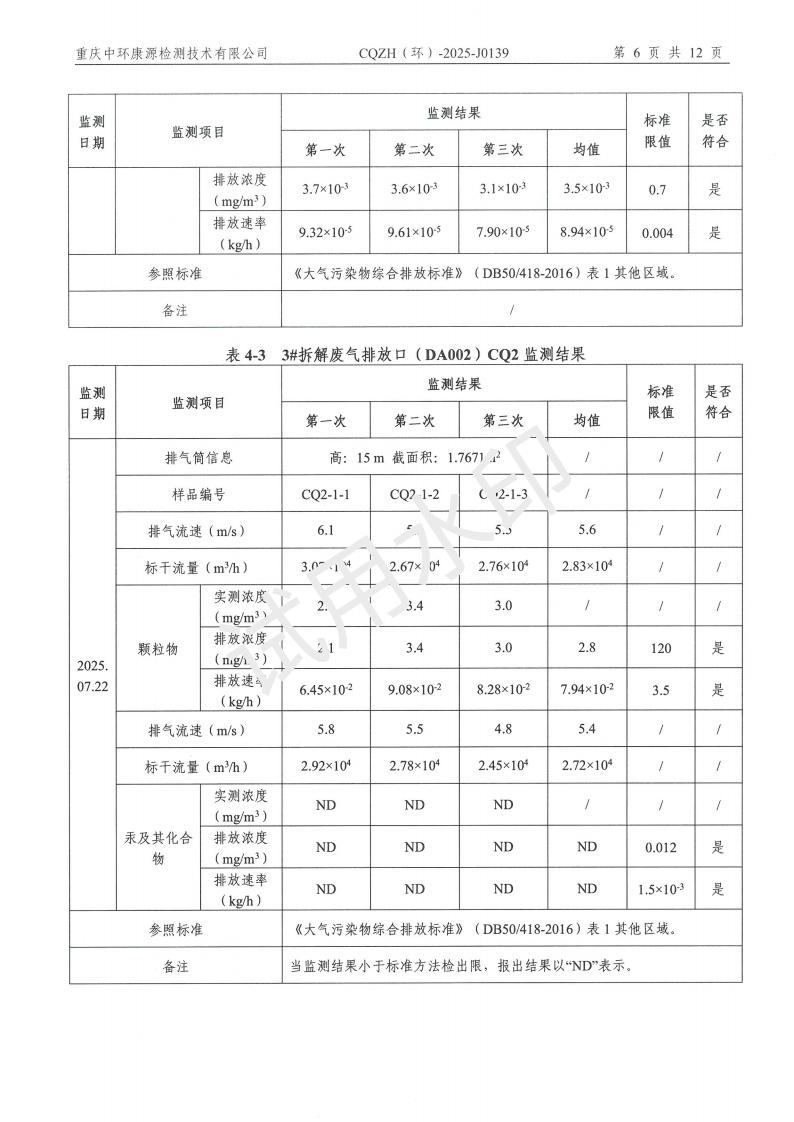 2025年7月22日,我司委托第三方機構進行了2025年度第三季度監測,監測項目為水氣聲,各項數據達標,現將監測報告公示如下: